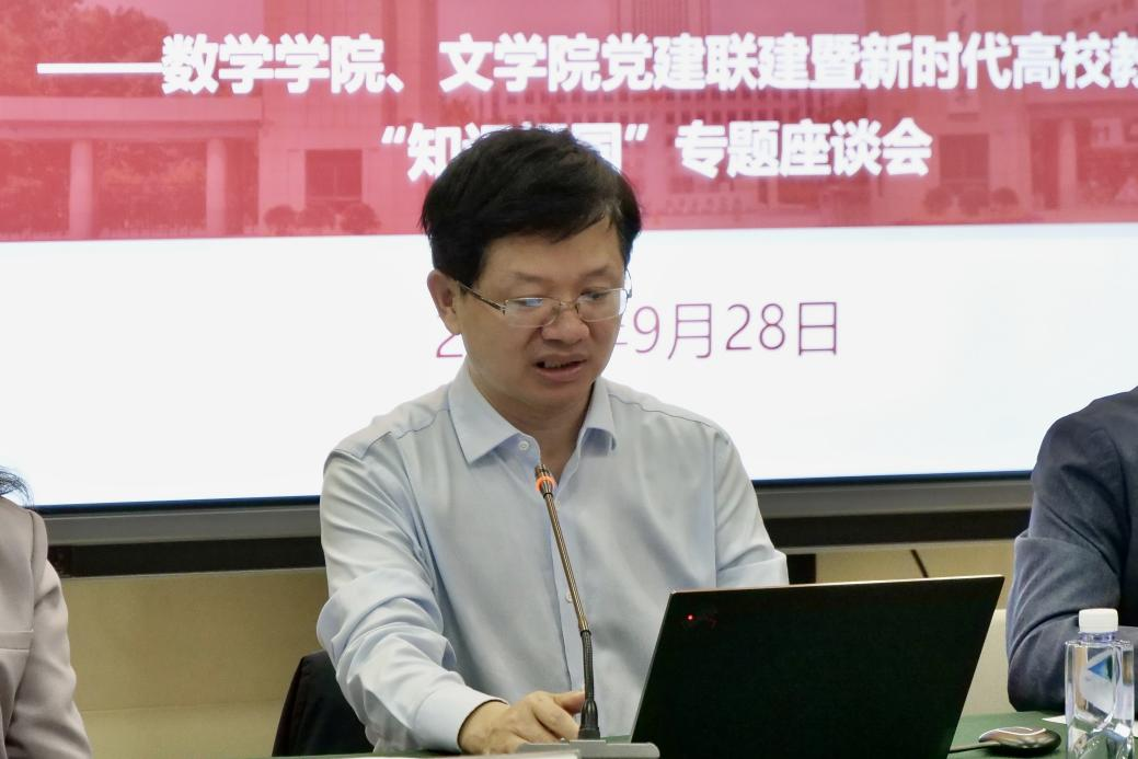 随后,王光辉概述了黄际遇先生教育救国、赓续文脉的事迹,并介绍了数学学院团队建设与发展的历史脉络。他表示,数学学院始终坚持党建引领,弘扬先贤精神,在立德树人、铸魂育人中强化“五育并举”,矢志奉献国家。黄发有概述了杨振声先生在BEAT365英国官网网站期间的办学治校的理念及抗战时期为创建西南联大、赓续中华学脉的事迹,并就中文学科的历史发展建设现状进行了汇报。他表示,学院将继续牢牢把握理想信念教育的主线,厚植家国情怀、弘扬优良学风、引育时代新人。
