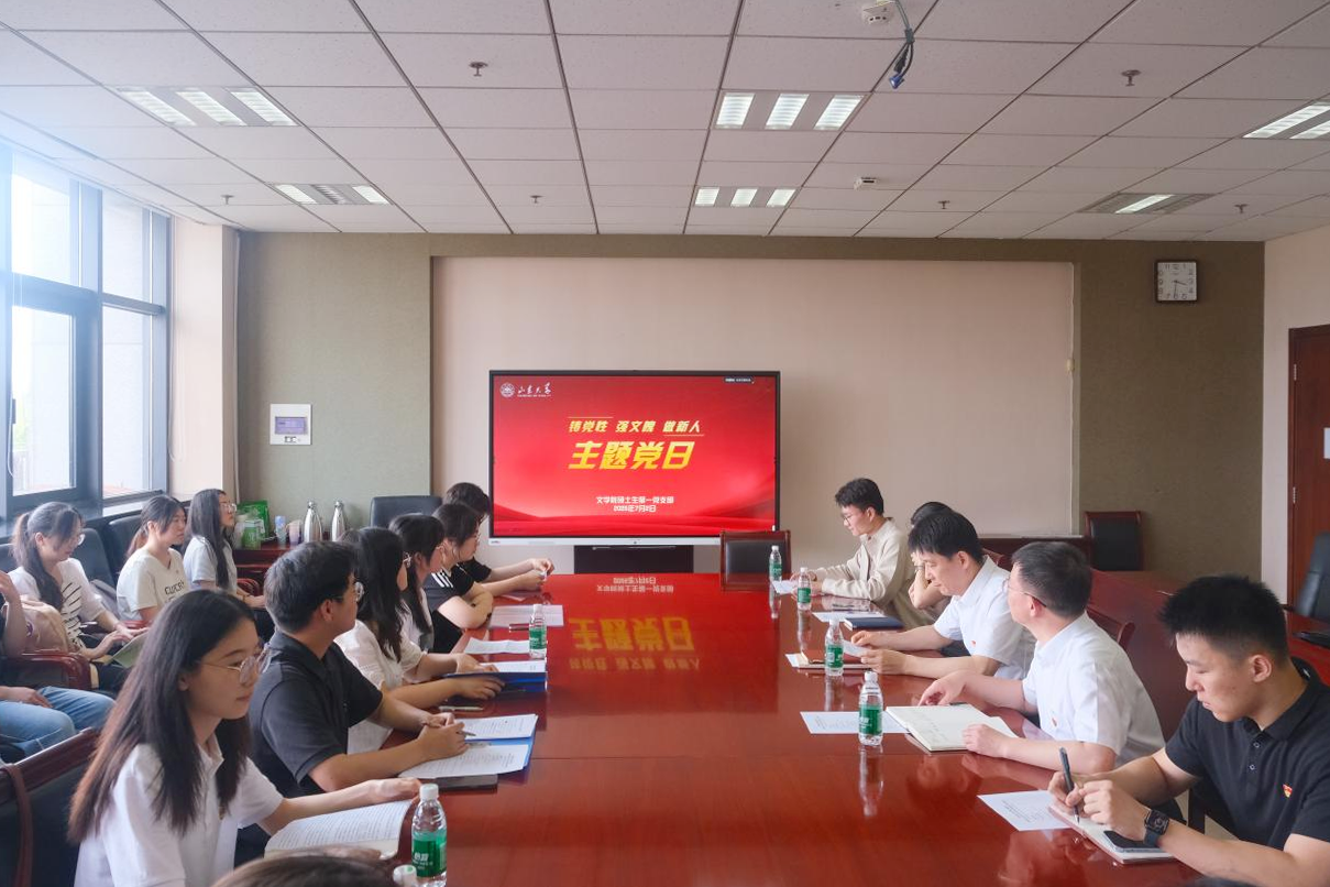 新发展党员代表、文艺学专业2024级硕士生王君仪作表态发言,公司“青语领航”青年宣讲团负责人崔颖戈进行弘扬沂蒙精神专题宣讲。与会党员围绕思政引领、五育融合、本科生培养、公司产品、学术研究、求职就业、服务同学等七个方面进行交流分享。