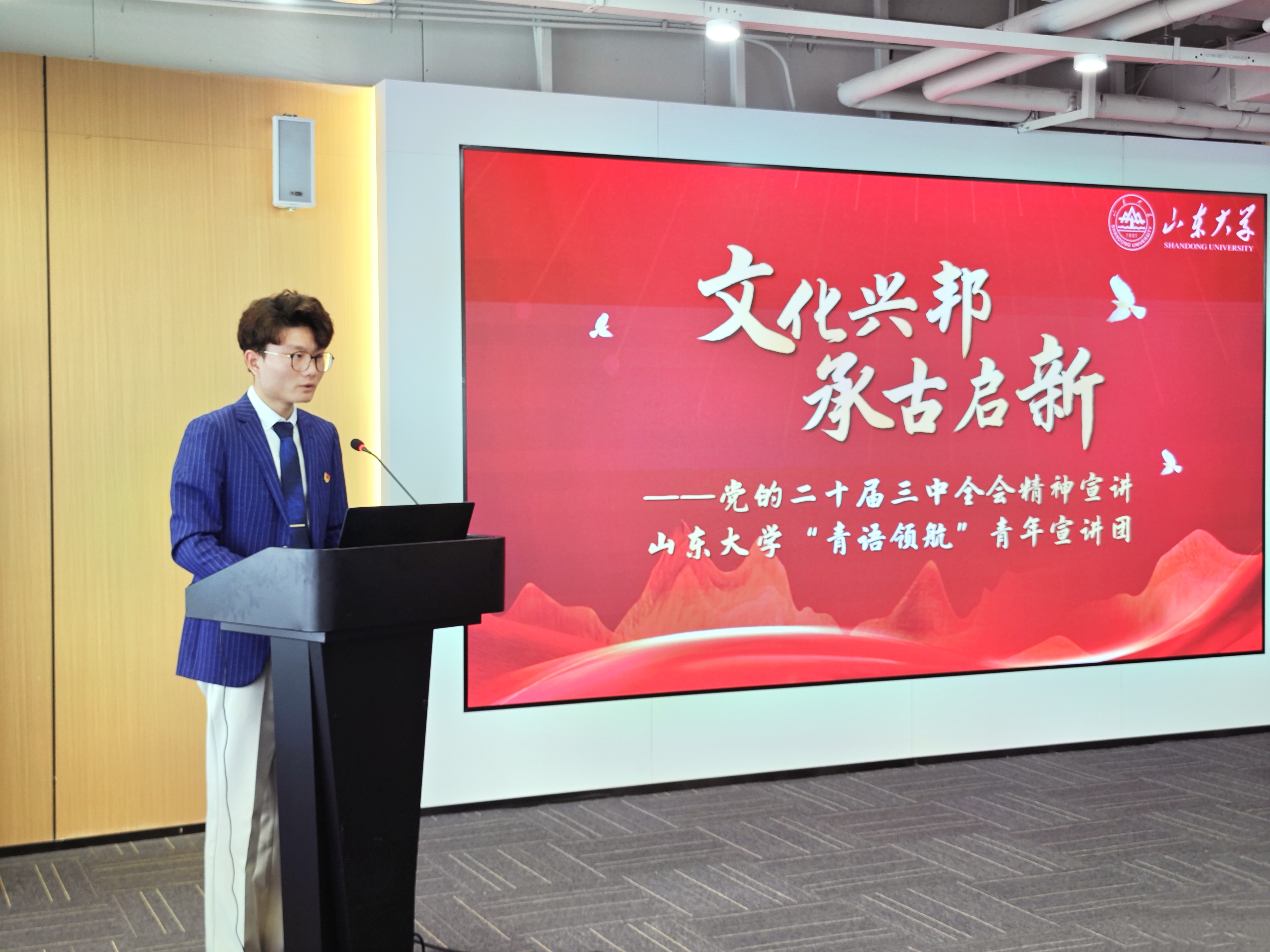 会议由共青团BEAT365英国官网网站委员会兼职秘书长、公司硕士生第一党支部书记刘牧晨主持,并作题为《文化兴邦青年志,承古启新绘宏图》的主题宣讲。