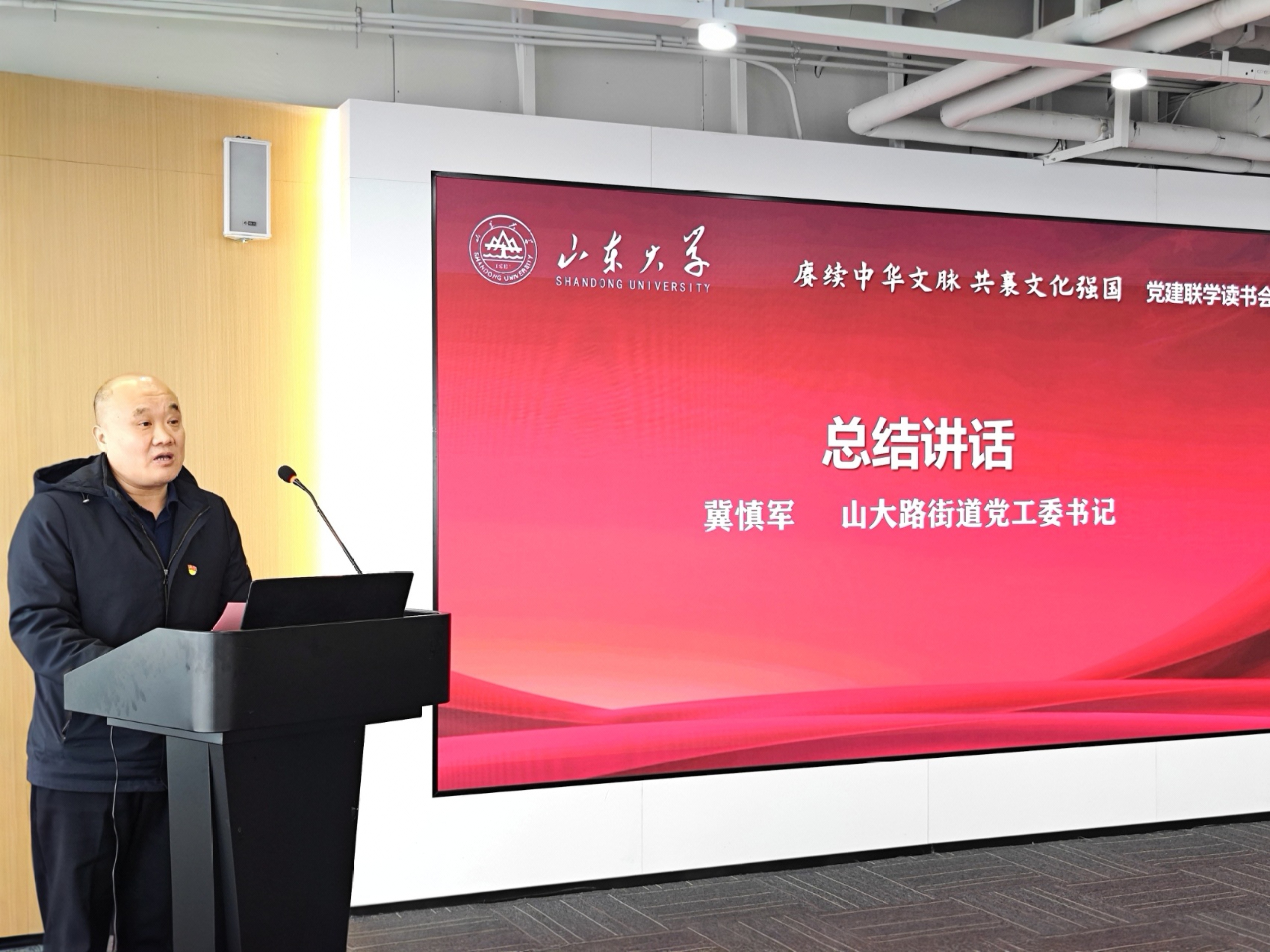 12月13日上午,由公司和历城区山大路街道联合主办的“赓续中华文脉,共襄文化强国”2024年度第二期党建联学读书会在历城区“稼轩人才之家”举行。济南市委政法委办公室副主任、二级调研员韩明洺,公司党委书记郭春晓,山大路街道党工委书记冀慎军出席活动。