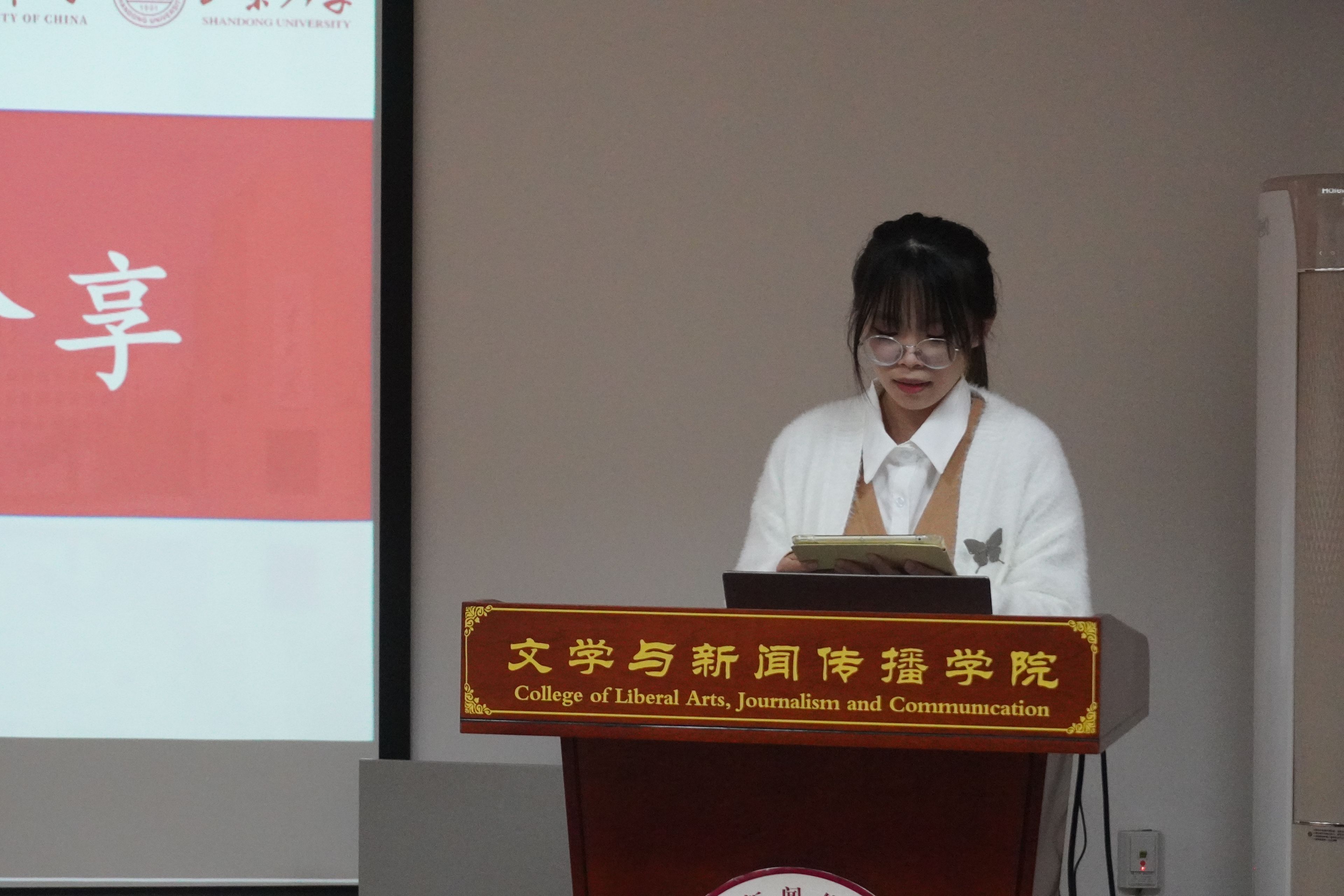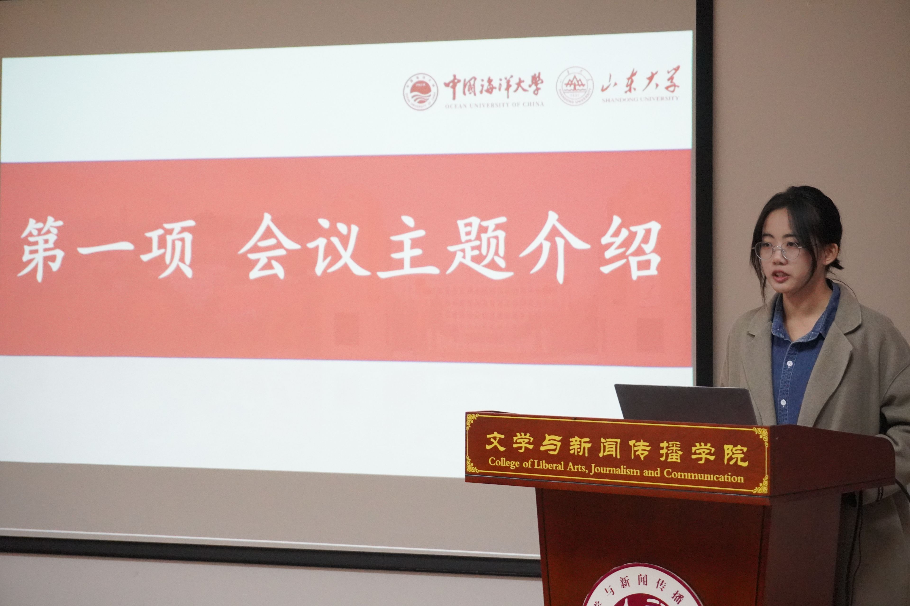 会议伊始,李方政首先对读书会的背景和主题进行了简要介绍。他提到,此次读书会恰逢习近平总书记在文艺工作座谈会上的讲话发表十周年,旨在通过两校支部的交流与学习,深入学习贯彻习近平总书记重要论述精神,擦亮中文新闻学子“赓续中华文脉”的使命底色。紧接着,中国海洋大学文学与新闻传播学院硕士研究生第一党支部书记王雪以“教育”和“文化”两大关键词作主题引入,她深情讲述了两校之间的深厚友谊与共同愿景,鼓励大家以此为契机,共同探讨青年党员在新时代背景下的使命与担当。