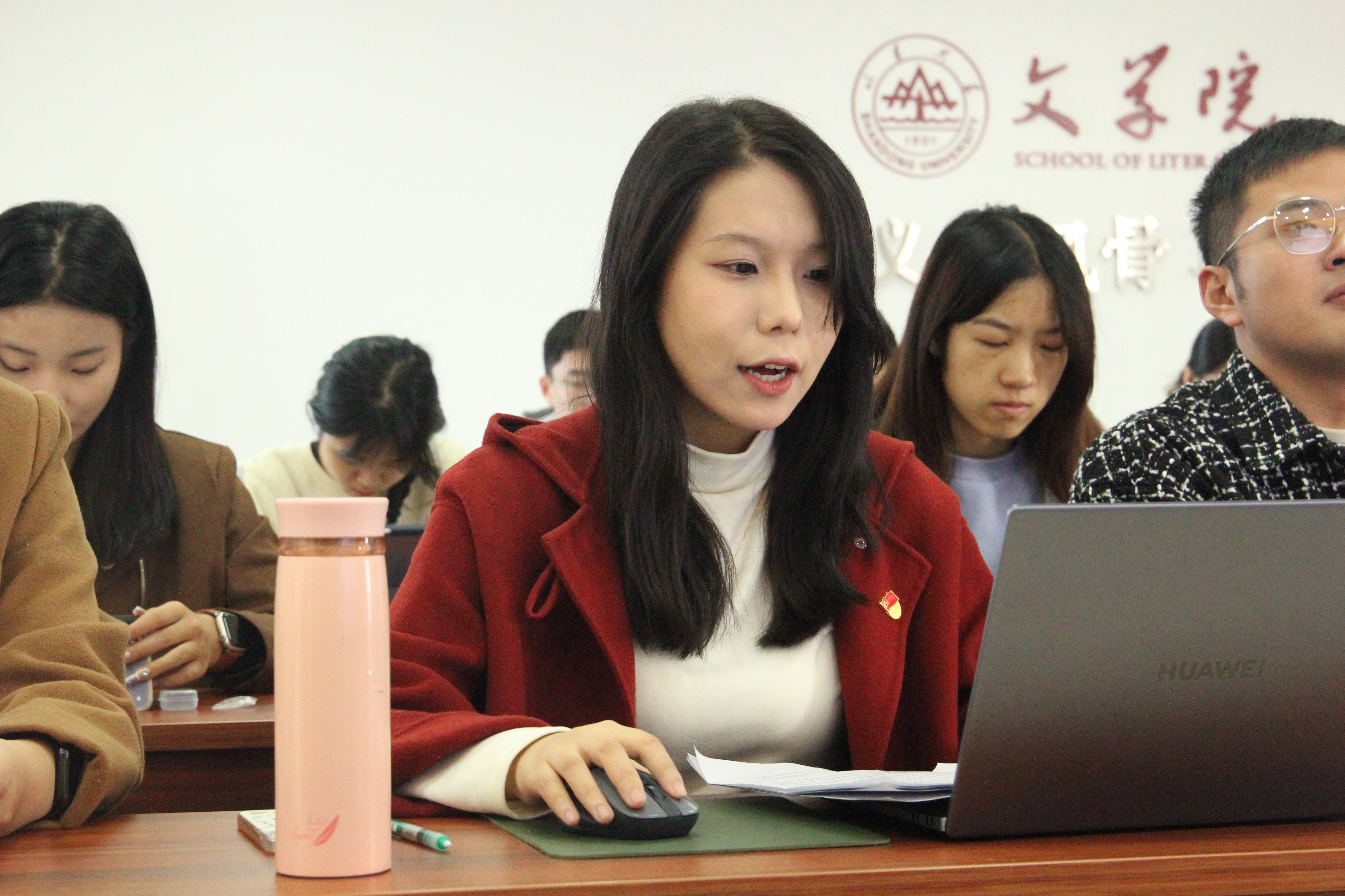在党员同志分享心得环节,我院刘欣根据闫雯同志的领学内容,结合个人学习感想,就如何锻造好习近平总书记在全国教育大会上提出的“六个力”作进一步探讨。她从学院里的点滴小事入手,以一个个生动鲜活的实例深入浅出地分析了思政引领力、人才竞争力、科技支撑力、民生保障力、社会协同力和国际影响力的具体内涵,鼓励大家为教育强国建设贡献青春力量。而中国海洋大学董芯宇则根据李亚超同志的领学内容,围绕习近平总书记在文艺工作座谈会上的讲话,就“中国精神是社会主义文艺的灵魂”这一主题进行了分享。她表示,作为文学与新闻传播专业的青年党员,要深刻理解和把握中国精神的内涵,结合专业所学,创作出更多反映时代精神的优秀作品,坚守艺术理想,追求德艺双馨。