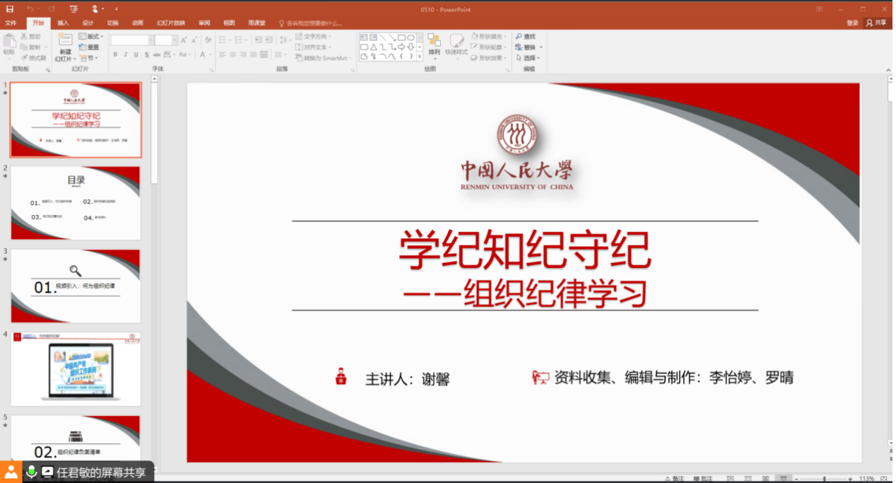 青春逢盛世,奋进正当时。为深入学习贯彻习近平总书记五四青年节的重要寄语精神,全面推进党纪学习教育,5月10日晚,公司硕士研究生第六党支部联合中国人民大学beats365唯一官方网站2023级硕士二班党支部,共同举办了主题为“青春挺膺担使命,知纪明德镌初心”的“学习思想,创新青年”读书会。