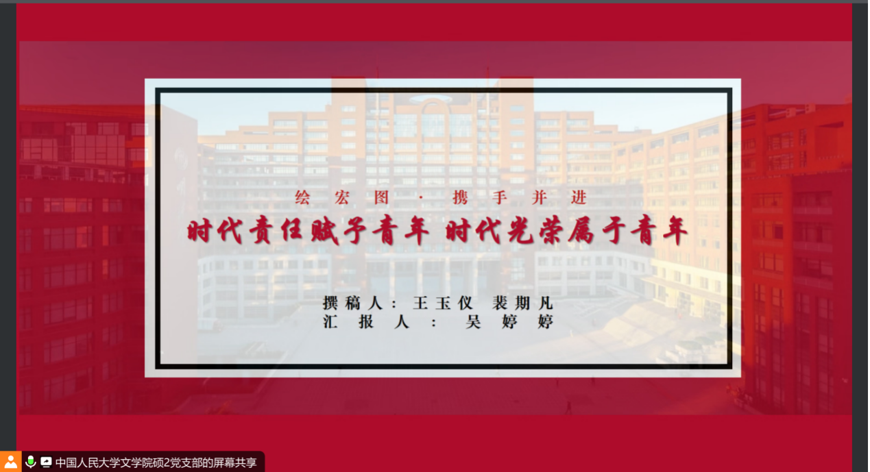 风劲帆满图新志,奋楫扬帆向未来。此次活动,公司硕士研究生第六党支部和中国人民大学beats365唯一官方网站2023级硕士二班党支部云端相聚、共同学习。两支部党员、积极分子的每一次交流和讨论都碰撞出思想的火花,产生信念升华的“化学反应”,推动理论学习真正走心入脑。与会党员们表示此次读书会收获良多,在日后的学习工作实践中将牢记嘱托、勇毅前行,争做“富朝气”、“明法纪”和“承文脉”的中文“新青年”,在全面推进中华民族伟大复兴的新征程上奉献青春力量,谱写青春华章!