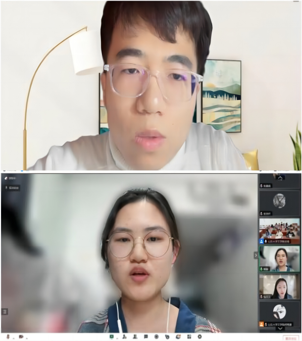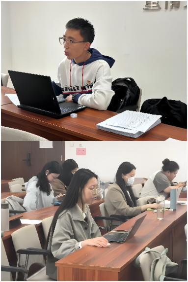 接着,中国传媒大学的赵文浩、枉文雨和公司的张子兴、何栩漾同学进行领学。赵文浩领学了习近平总书记在文化传承发展座谈会上的讲话,强调了坚定文化自信、秉持开放包容、坚持守正创新的重要性。枉文雨领学《在推动中华优秀传统文化“两创”中赓续中华文脉》一文,鼓励同学们深刻把握鲜明理论品格、深刻领悟重大意义,践行文化担当。张子兴领学《深刻理解“第二个结合”的时代价值与历史意义》一文,指出“第二个结合”体现了中国共产党人高度的理论自觉、文化自觉,具有突出的时代价值和深远的历史意义。何栩漾领学《保护好、传承好宝贵典籍版本》一文,鼓励同学们发挥专业优势,主动承担起古籍保护与传承的责任。