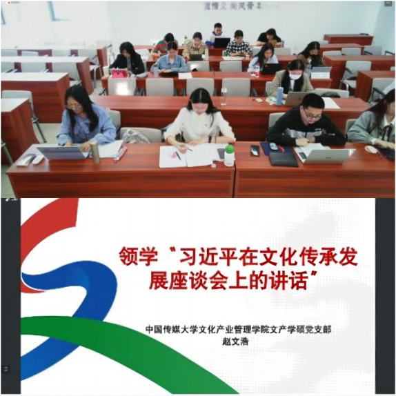 中国传媒大学文化产业管理学院学术硕士党支部书记包文文在总结时指出,本次读书会以支部共建的形式搭建了两校交流思想、分享心得的平台,有助于推动员工担承时代使命、践行文化担当,并结合自身专业知识开展实践,为实现中华民族伟大复兴贡献坚实力量。下一步,两支部将继续加强交流合作,构建常态化学习机制,进一步推动学习贯彻习近平新时代中国特色社会主义思想走深走实、入脑入心。