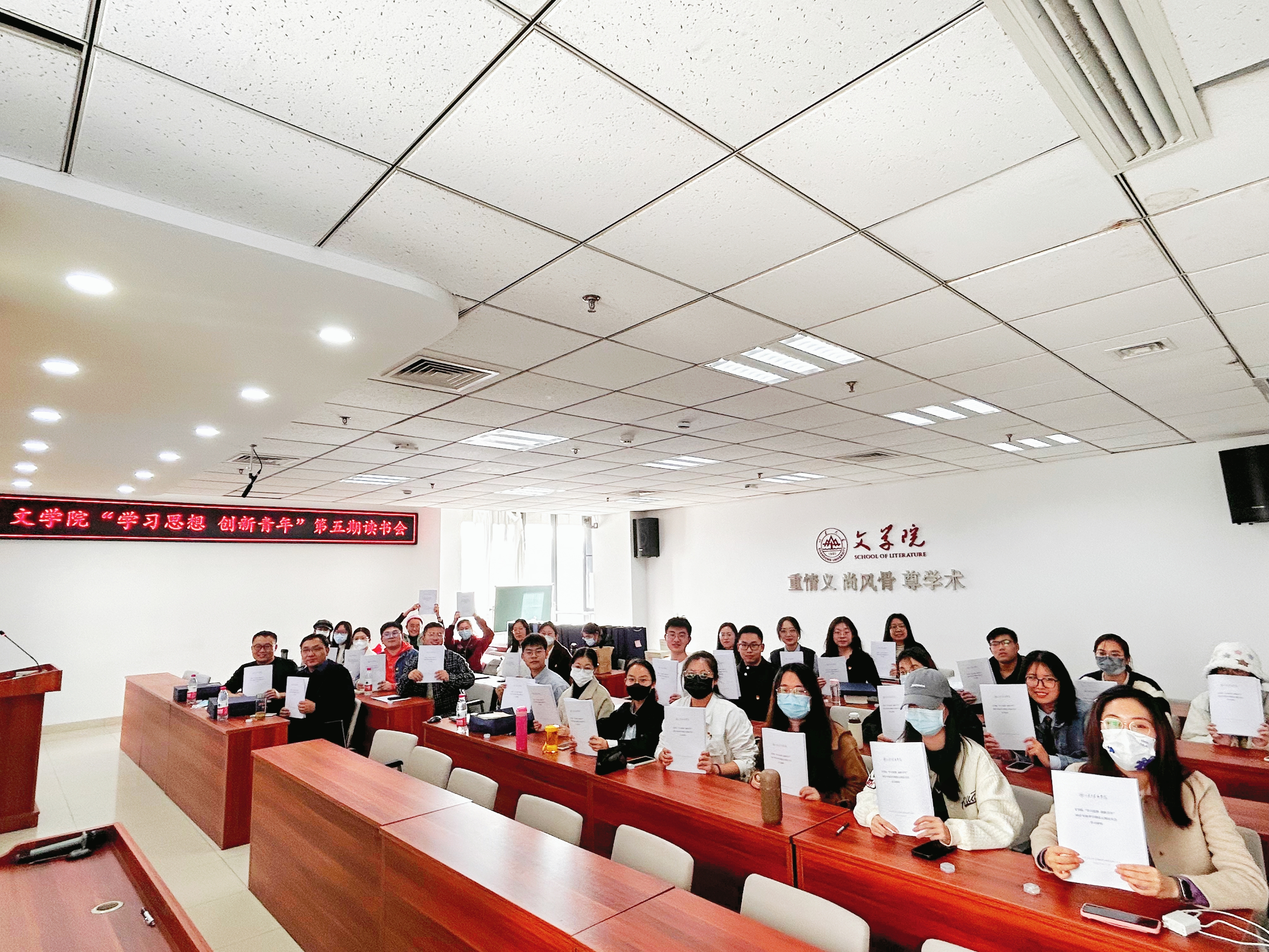 高举旗帜促两创,学科引领承文脉。为深入学习贯彻习近平文化思想,厚植政治理论学习成色,更好担负起新时代中文人的文化使命,12月8日下午,公司古代文学党支部和硕士第六党支部在知新楼A606联合举办了“学习思想,创新青年”2023年秋季学期第五期读书会。