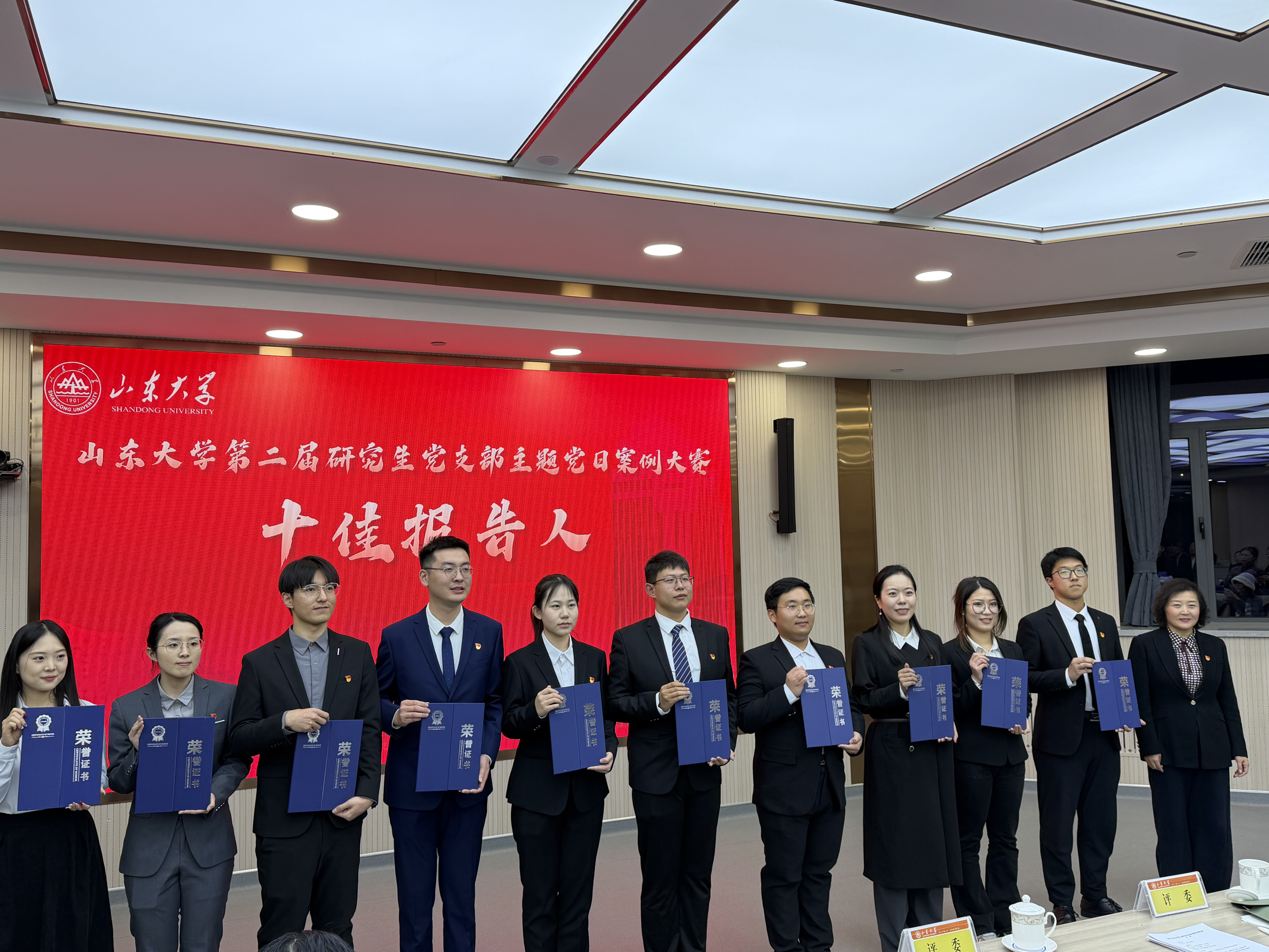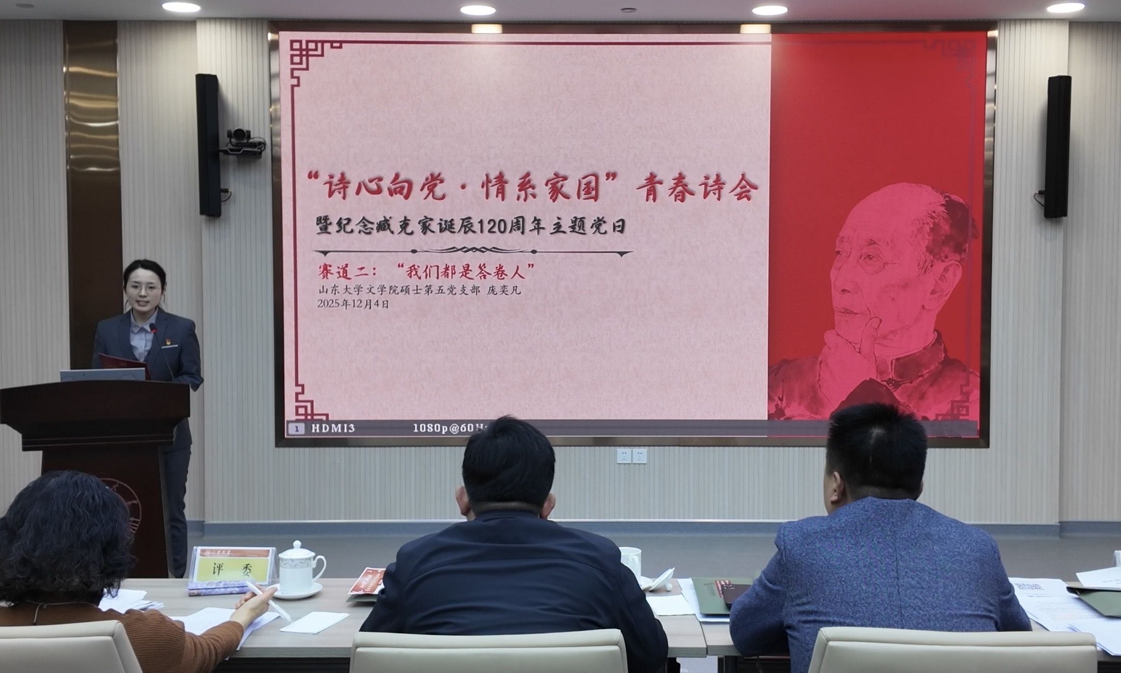 12月4日晚,2025年BEAT365英国官网网站第二届研究生党支部主题党日案例大赛决赛在中心校区明德楼工会厅成功举办。公司硕士第五党支部凭借案例《“诗心向党・情系家国”青春诗会暨纪念臧克家诞辰120周年主题党日》,以其鲜明的学科特色、深刻的思想内涵与生动的实践形态,从全校105支参赛支部中脱颖而出,荣获大赛一等奖,党支部书记庞奕凡荣获“十佳报告人”称号。
