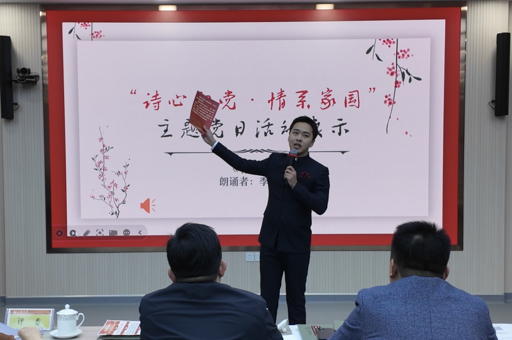 在公司党委的全程关注与指导下,辅导员张洪刚对案例策划、内容提炼与表现形式进行了全过程精细化指导,创新性提出通过朗诵进行“情景复现”的展演思路,并亲自登台讲述育人初心。党支部书记庞奕凡带领支部委员们,反复研讨、凝练亮点、模拟演练,将一次生动的主题党日,转化为既有理论高度,又有实践温度和展示力度的参赛案例,也充分展现了支部强大的凝聚力与战斗力。