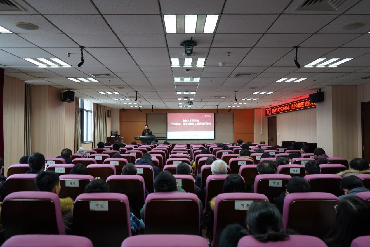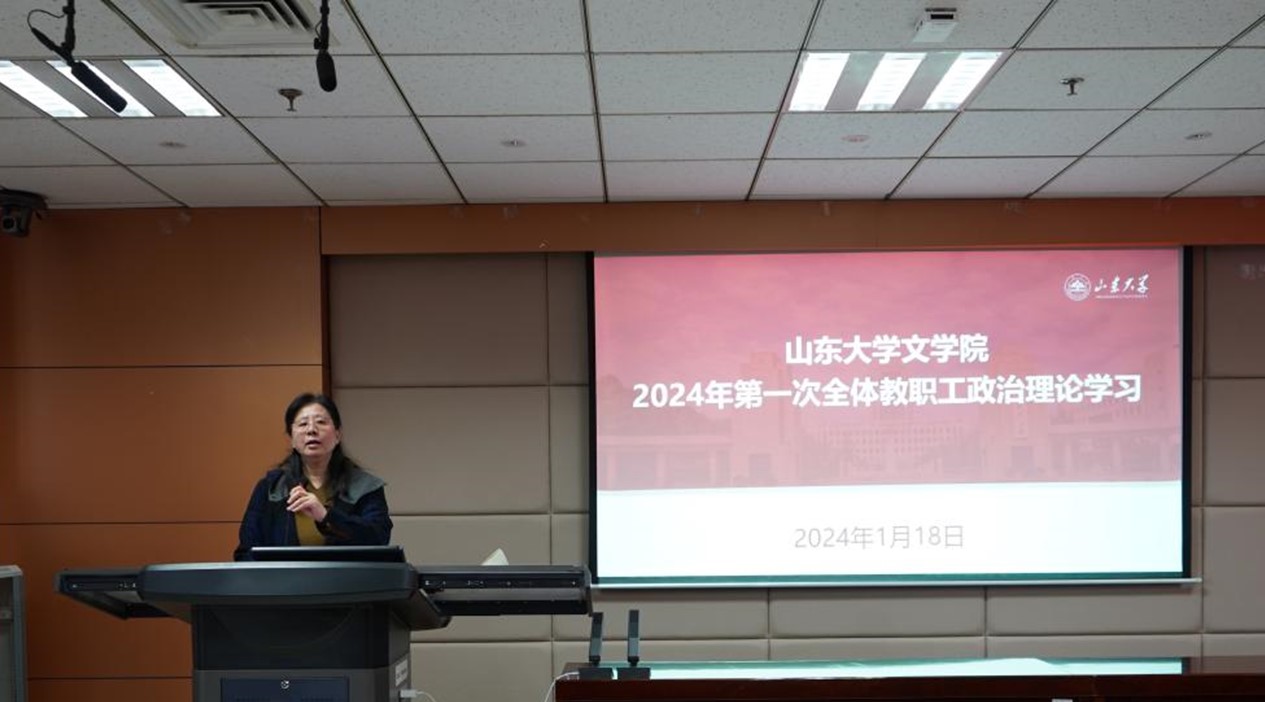 “观乎天文,以察时变;观乎人文,以化成天下。”习近平文化思想,既是源自历史的深刻洞察,也是昭示未来的卓识远见。郭春晓领学了习近平文化思想的丰富内涵。郭春晓指出,全体教职工应当坚定不移贯彻习近平文化思想,在习近平新时代中国特色社会主义思想的指导下坚持“两个结合”,推动中文团队建设走深走实。郭春晓鼓励广大教职员工深入了解国家文化政策新导向,从国家需求出发,为中华优秀传统文化“两创”提供学科专业支持。同时,要充分把握国家战略调整带来的新机遇,为中文学科发展蓄势赋能,在对国家政策的回应中激活学科创新动能,实现科研创新与文化育人的结合,在新的历史起点上继续推动文化繁荣,承担新时代新的文化使命,助力文化强国建设,为谱写中华民族现代文明新篇章汇聚强大力量。