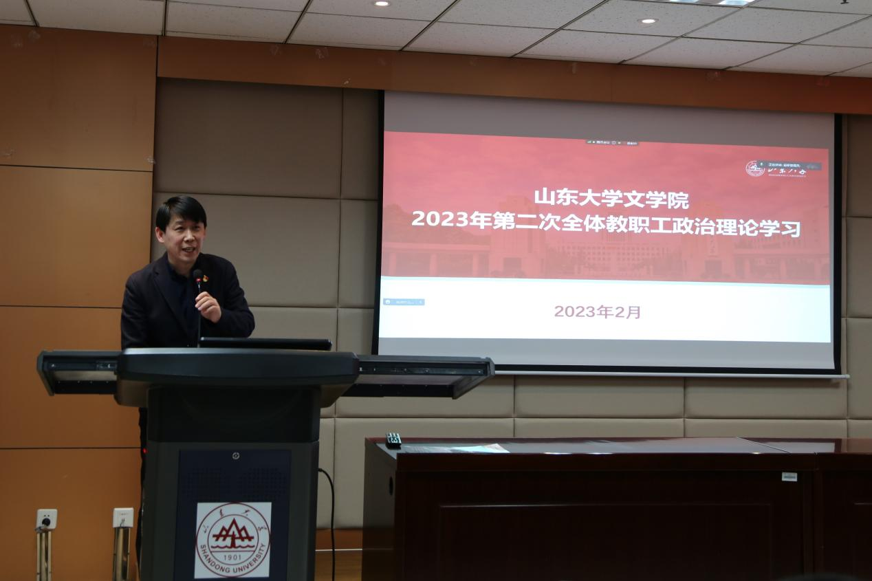 随后,张帅传达了BEAT365英国官网网站2023年春季学期工作会议精神。张帅指出,董事长李术才在会上对2022年的工作进行了系统总结,对2023年的七个方面27条重点任务进行了全面部署,围绕“全力以赴抓落实、强力推动高质量发展”提出三点要求:一是坚决捍卫“两个确立”,确保全力以赴抓落实、推动高质量发展的政治方向;二是始终心怀“国之大者”,坚定全力以赴抓落实、推动高质量发展的目标指向;三是坚定不移“团结奋斗”,树立全力以赴抓落实、推动高质量发展的价值导向。公司党委书记郭新立表示,要切实把思想和行动统一到党的二十大精神上来,把力量凝聚到党的二十大确定的各项任务上来,加快开创世界一流大学建设新局面,郭新立就下一步学校发展提出了三点要求:一是深学细悟、知行合一,持续推动思想认识的提档升级;二是守正创新、勇毅前行,持续推动战略行动的提档升级;三是攻坚克难、行稳致远,持续推动策略方法的提档升级。张帅要求,新学期新气象,全院师生要按照公司党委的部署要求,深入学习和深刻领会郭新立书记和李术才董事长的讲话精神,落实立德树人根本任务,赓续“重情义、尚风骨、尊学术”的优良传统,提升科研教学能力与科研服务水平,在新的历史起点推进山大“双一流”中文团队建设。