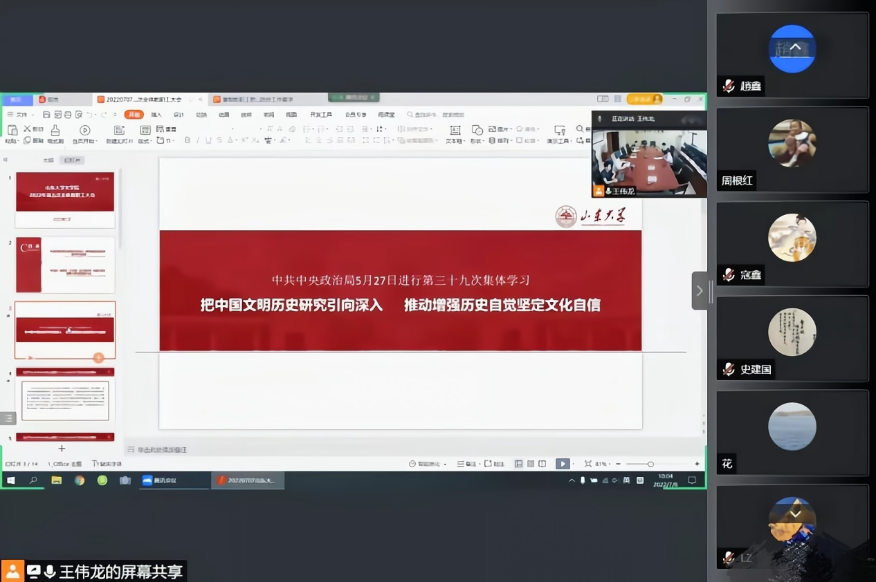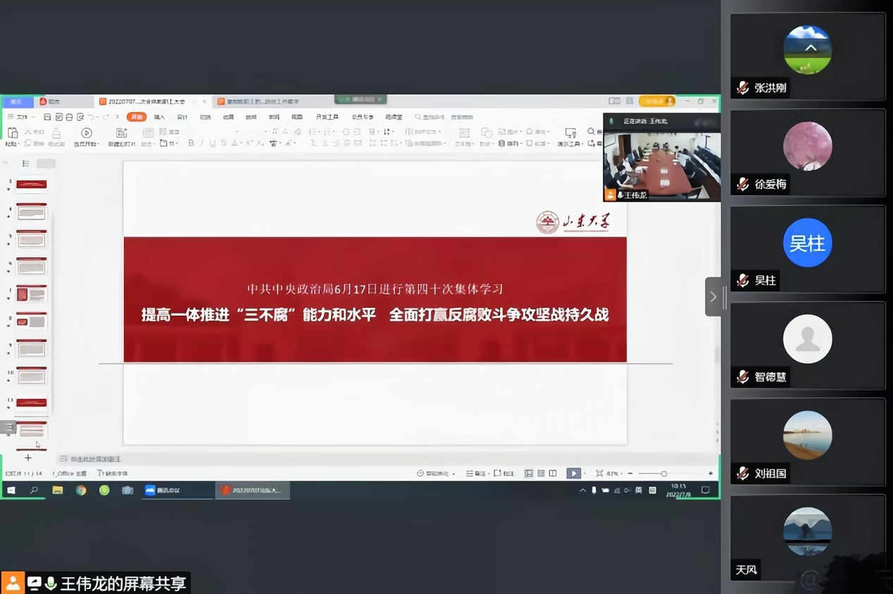 7月8日上午,公司于知新楼A706开展第五次全体教职工政治理论学习,并在腾讯会议平台设立线上分会场。本次会议由公司党委书记张帅主持,经理杜泽逊,常务副经理黄发有,副经理程相占、马兵、杨建刚、樊庆彦,公司党委副书记王萌,副处级组织员沈文以及全体教职工参加会议。