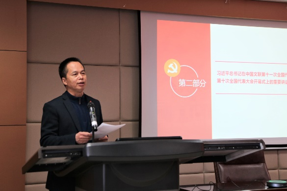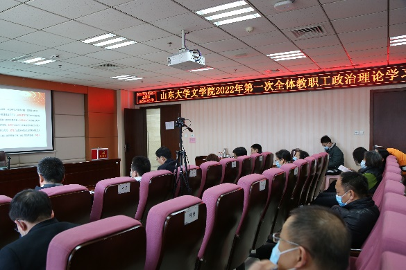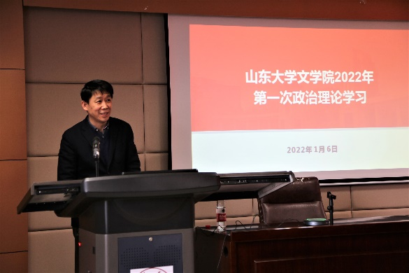 随后,张帅带领全体教职工对习近平总书记在中国文联第十一次全国代表大会、中国作协第十次全国代表大会开幕式上的重要讲话精神进行了学习与解读。习近平总书记对广大文艺工作者提出5点希望,一是心系民族复兴伟业,热忱描绘新时代新征程的恢宏气象;二是坚守人民立场,书写生生不息的人民史诗;三是坚持守正创新,用跟上时代的精品力作开拓文艺新境界;四是用情用力讲好中国故事,向世界展现可信、可爱、可敬的中国形象;五是坚持弘扬正道,在追求德艺双馨中成就人生价值。源于人民、为了人民、属于人民,是社会主义文艺的根本立场,也是社会主义文艺繁荣发展的动力所在。公司杜泽逊教授、黄发有教授、程相占教授分别结合自身文学科研经历以及工作实际,深入交流分享了心得体会、思想感悟与思路举措。大家一致认为,习近平总书记在大会开幕式上的讲话高瞻远瞩、思想深邃、内涵丰富、催人奋进,是指导当前和今后一个时期我国文艺工作的纲领性文件。齐鲁文化在中华文明史上做出了独特贡献,山东文艺工作者与文学研究者应当更为自觉地把握好历史进程和时代大势,高举旗帜、坚定方向,用情用力讲好山东故事、讲好中国故事,推动中华优秀传统文化的创造性转化与创新性发展,推动山东文学和山大的文学研究翻开新篇章、书写新的史诗。