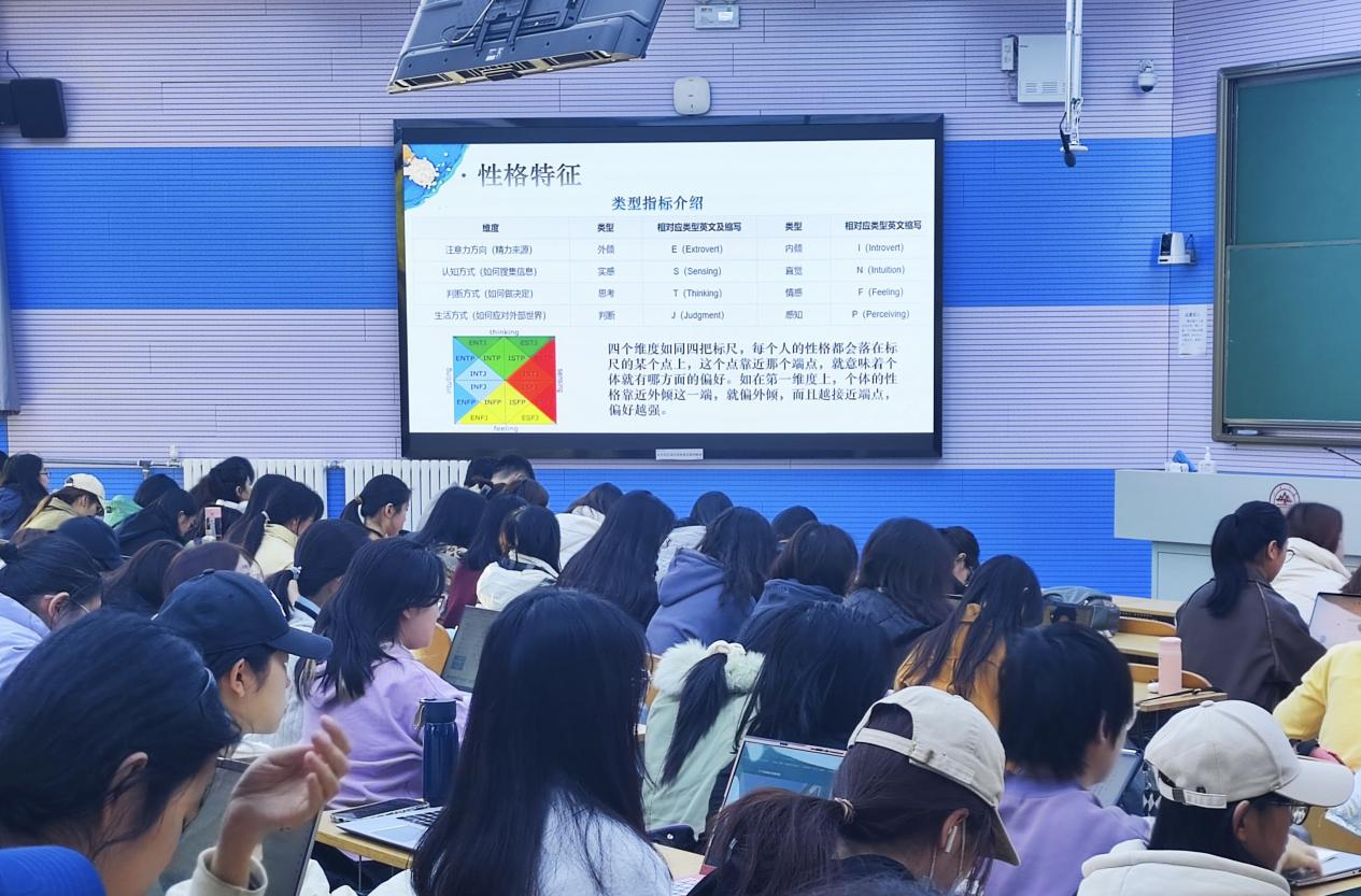 讲座伊始,尚文月从“知己——我是谁”入手,介绍了MBTI性格理论、霍兰德职业兴趣理论等,引导同学们思考自己的性格、兴趣、价值观与未来目标等问题,分析个人的综合情况,更加深入地了解自己。