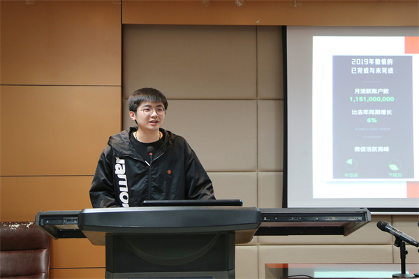 万钊廷就新媒体运营进行了分享。他谈到,要实现公众号运营的品牌化,就要有精准的定位、合适的内容以及有效的运营。“精准的定位”,即明确一个账号存在的最初意义,运营应当立足定位并高于定位,围绕用户需求生产内容,与更多的目标用户形成连接。而“合适的内容”则是从同类账号中突围的关键,其核心在于发光的素材、合理的策划、固定的栏目和必要的爆款,从内容质量入手,提升账号知名度和用户黏性。在运营中,要把握好短平快的“新媒体风”,擅用“心理战”摸准用户痛点、痒点,把好的内容推出去。分享的最后,万钊廷还从编辑排版、平面设计、视频制作等不同的角度向同学们介绍了一些新媒体编辑适用的网站,提升了同学们新媒体运营的专业技能。