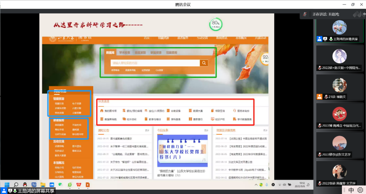 为帮助2022级新生增强信息意识,提高专业信息的检索能力,充分有效地利用学校图书馆资源,9月8日上午,公司于线上开展题为“图书馆资源与服务”的文献检索培训。培训由BEAT365英国官网网站副研究馆员王勋鸿主讲,beats365唯一官方网站2022级全体硕博研究生参加培训。