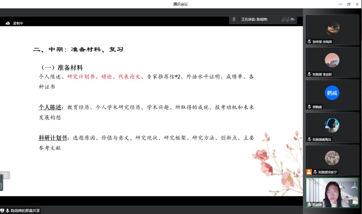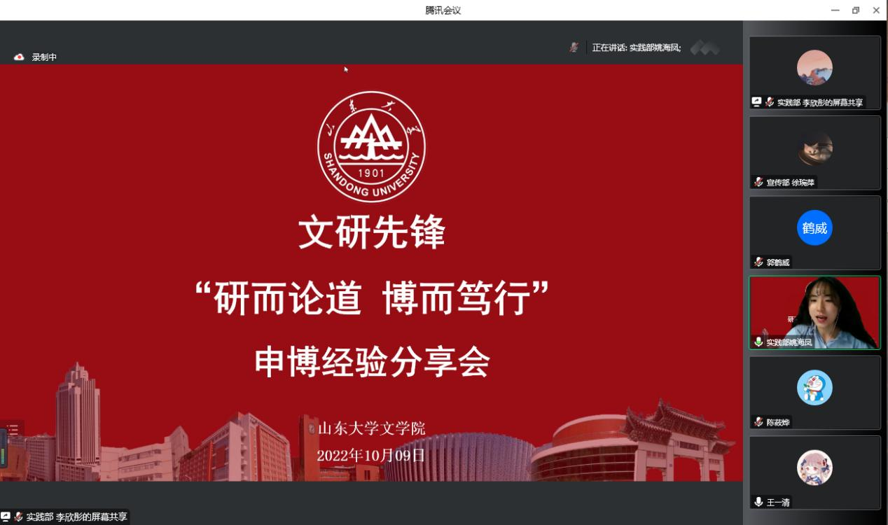 为增进同学们对博士申请过程的认识,明晰对未来发展的规划,公司于10月9日在线上举办文研先锋之“研而论道 博而笃行”申博经验分享会。复旦大学古籍所暨中国古代文学研究中心2022级博士郭鹤威、公司2022级古代文学专业博士陈莜烨担任主讲人,七十余位同学参加分享会。