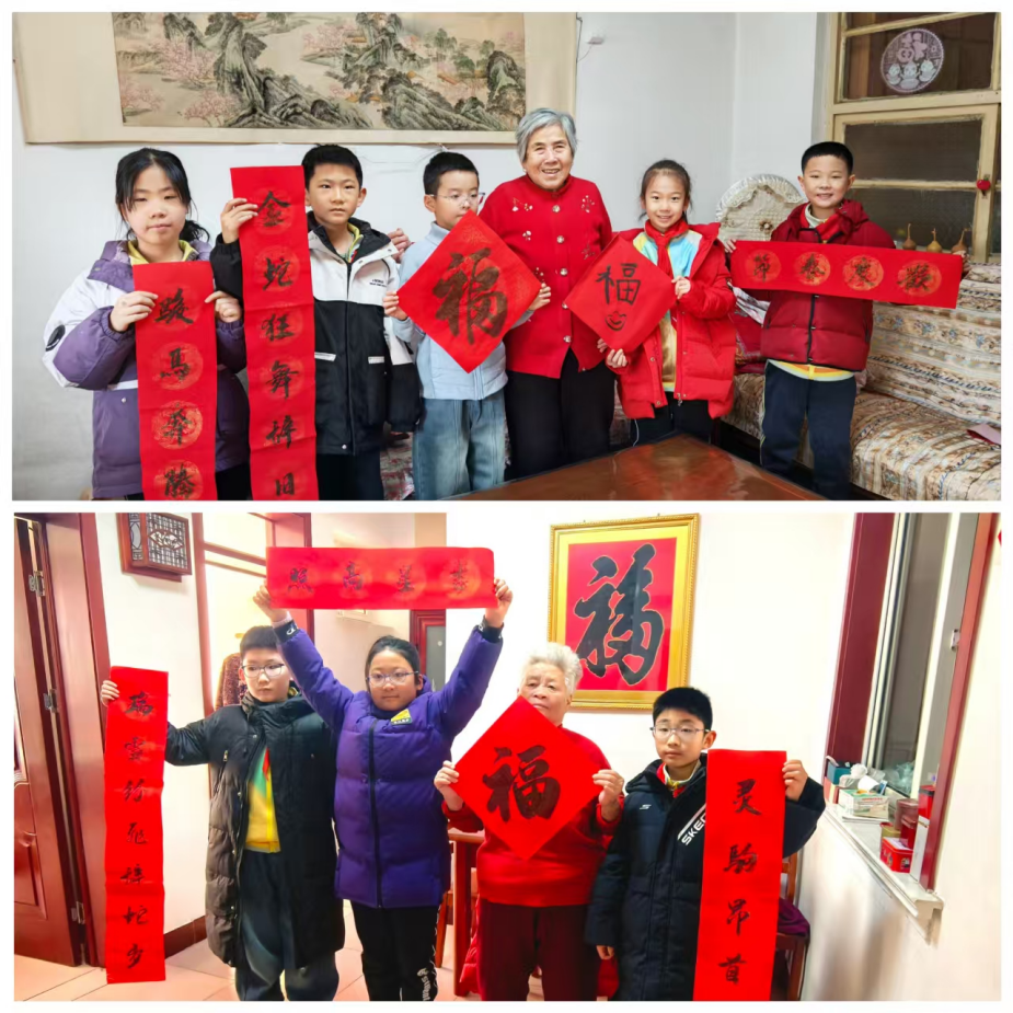 在济南市历下区甸柳新村街道甸北社区,队员们开展了“写福字、迎新春”主题活动,通过生动有趣的动画短片,向孩子们介绍了“福”字的起源与演变、春联的历史典故及文化内涵。团队成员还为孩子们讲解握笔姿势、运笔方法等基础书法技巧,让孩子们在笔墨纸砚之间感受浓浓年味,体会传统文化魅力。