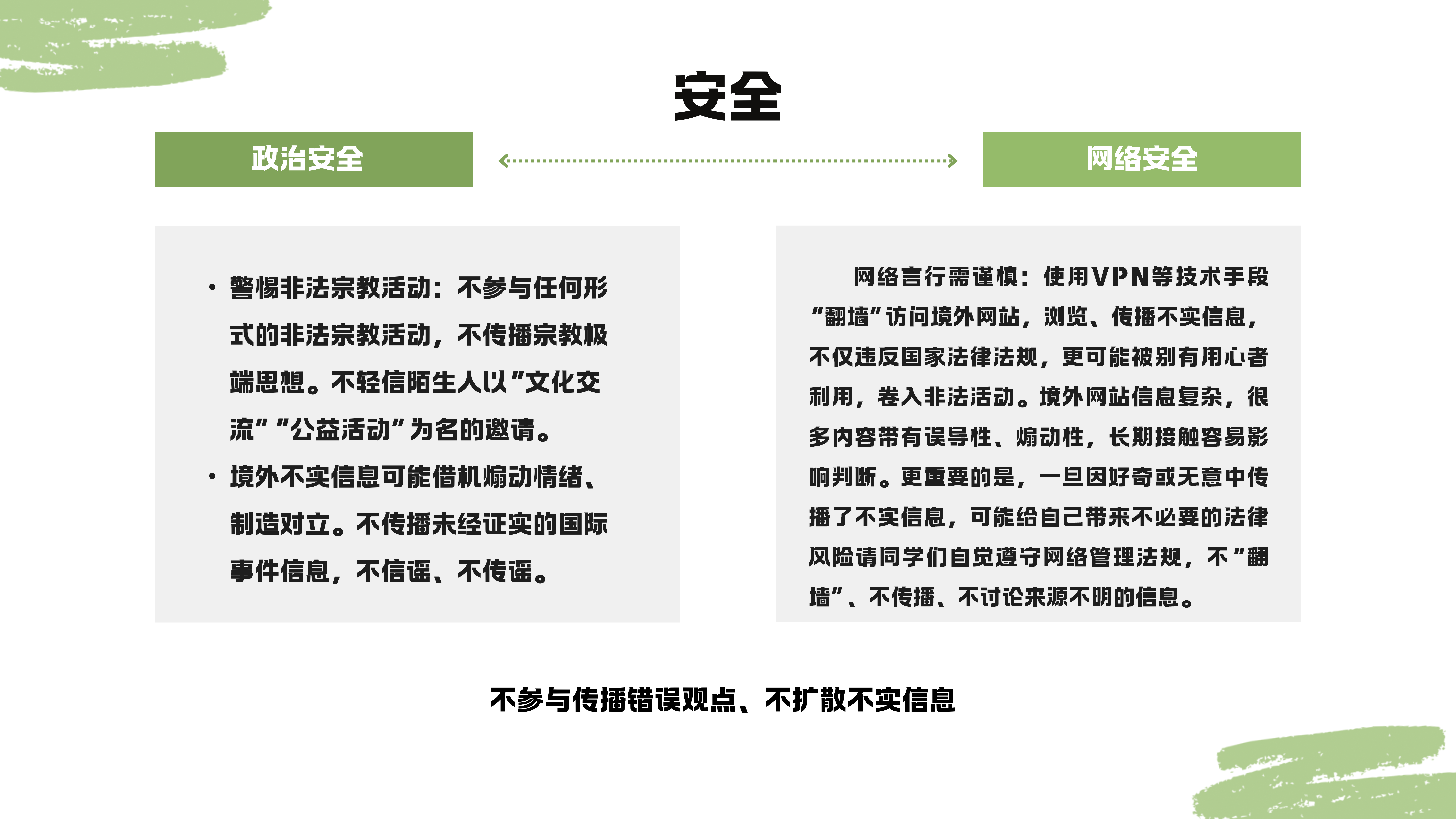 在安全规范与日常管理方面,侯天语表示,同学们应高度重视政治安全、网络安全与人身安全,严格遵守相关法律法规、不断提高信息辨别能力、持续关注生活安全细节,为各方面安全提供坚实保障。同时,侯天语进一步强调了员工请假与报备问题,提醒同学们自觉遵守学校日常管理规定、及时报备请假离校相关情况。