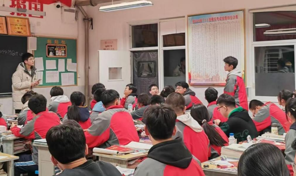 活动伊始,张桐首先看望了高中班主任,并深入了解高三员工的备考状态与现实需求。在老师的带领下,他走进一间高三教室,开启了一场别开生面的宣讲交流。