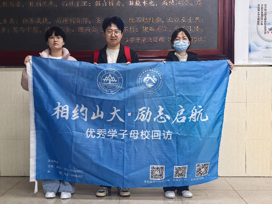 活动最后,团队成员在教学楼《劝学》的铜雕牌匾下合影留念,为此次回访画上圆满句号。