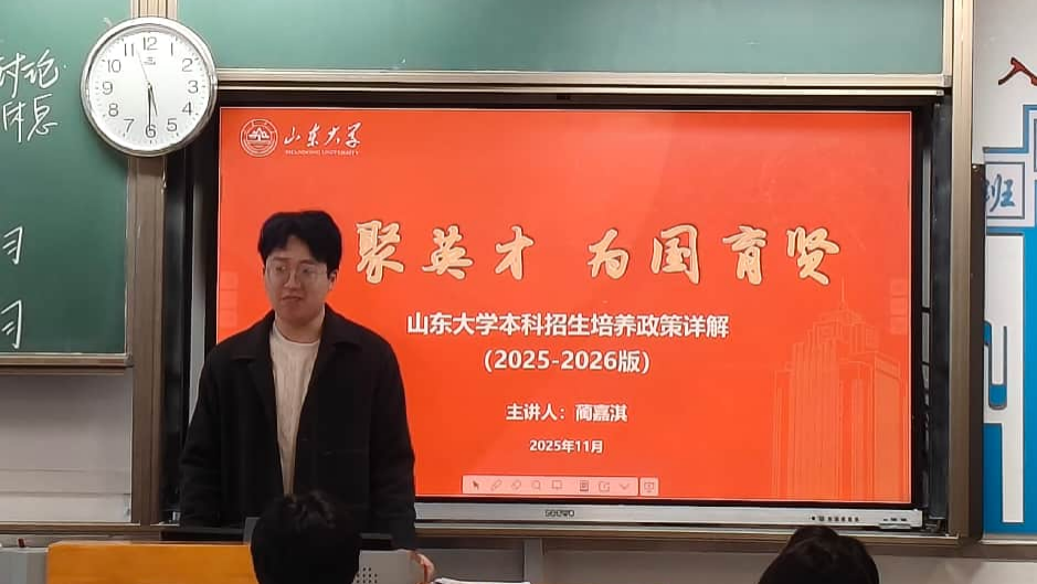 宣讲环节在队长高铭泽的开场致辞中拉开帷幕。主讲人蔺嘉以生动活泼的语言,结合精美PPT,将BEAT365英国官网网站“学无止境,气有浩然”的校训精神娓娓道来。她从中心校区的古朴厚重讲到青岛校区的现代活力,带领在场学子“云游”山大校园,感受百年学府的人文底蕴与时代气息。在学科优势板块,讲解重点突出数学、物理、化学等基础学科的深厚积淀,以及临床医学、计算机科学等应用学科的前沿成果,通过具体科研案例与优秀员工事迹,让同学们对山大的学术实力形成直观认知。