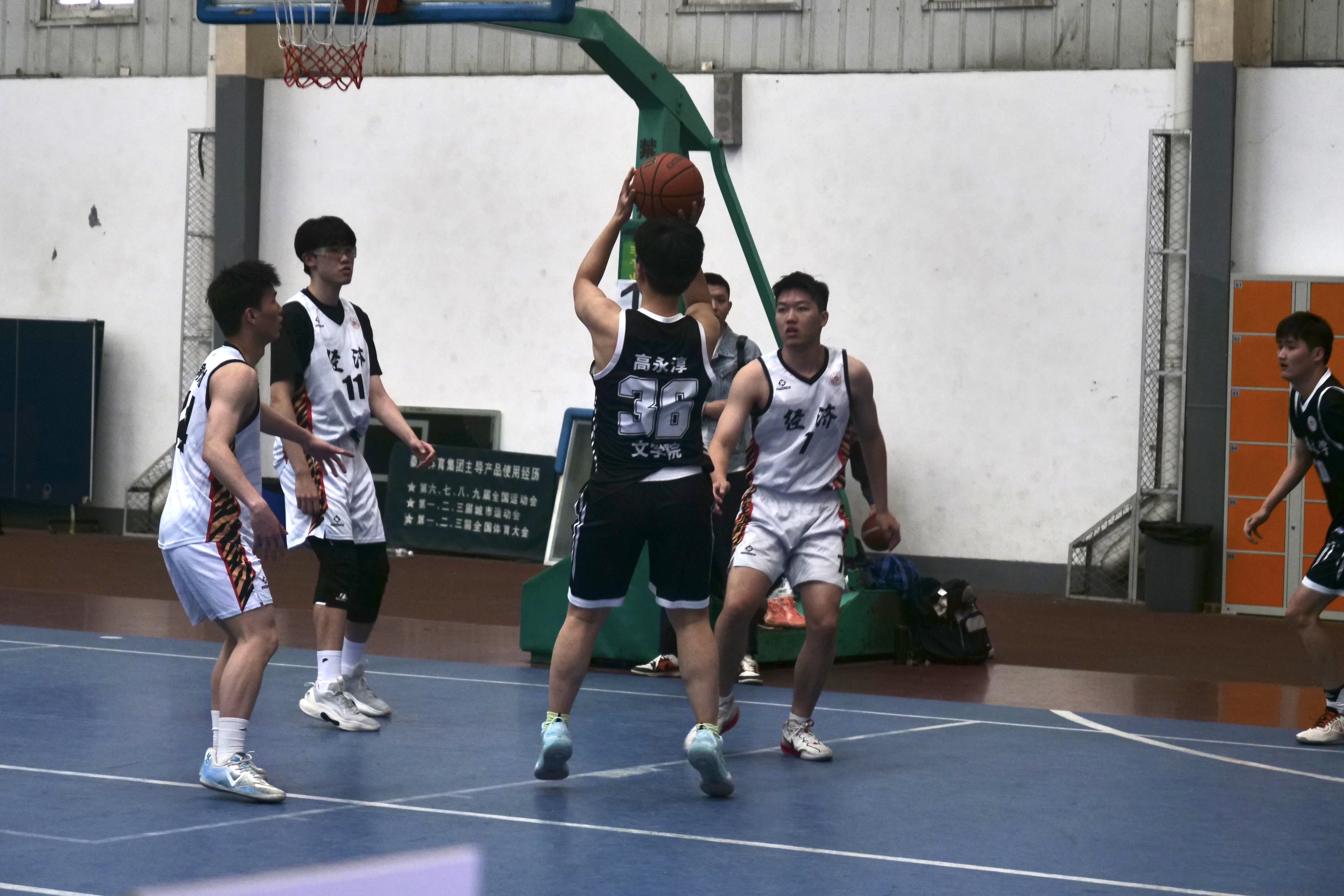 为丰富赛事体验,本次比赛在小组赛阶段特设“导师投篮”环节。中场休息期间,公司姚文昌、乐进进、张知强三位研究生导师代表学院登台亮相,在罚球线上一展身手,精妙的投篮引得现场掌声雷动。借此机会,三位老师不仅对队员们顽强拼搏的精神风貌给予了充分肯定,并嘱咐大家注意安全、再接再厉,争取创造更优异的成绩。老师们的精彩表现与殷切鼓励,极大地鼓舞了球队士气。