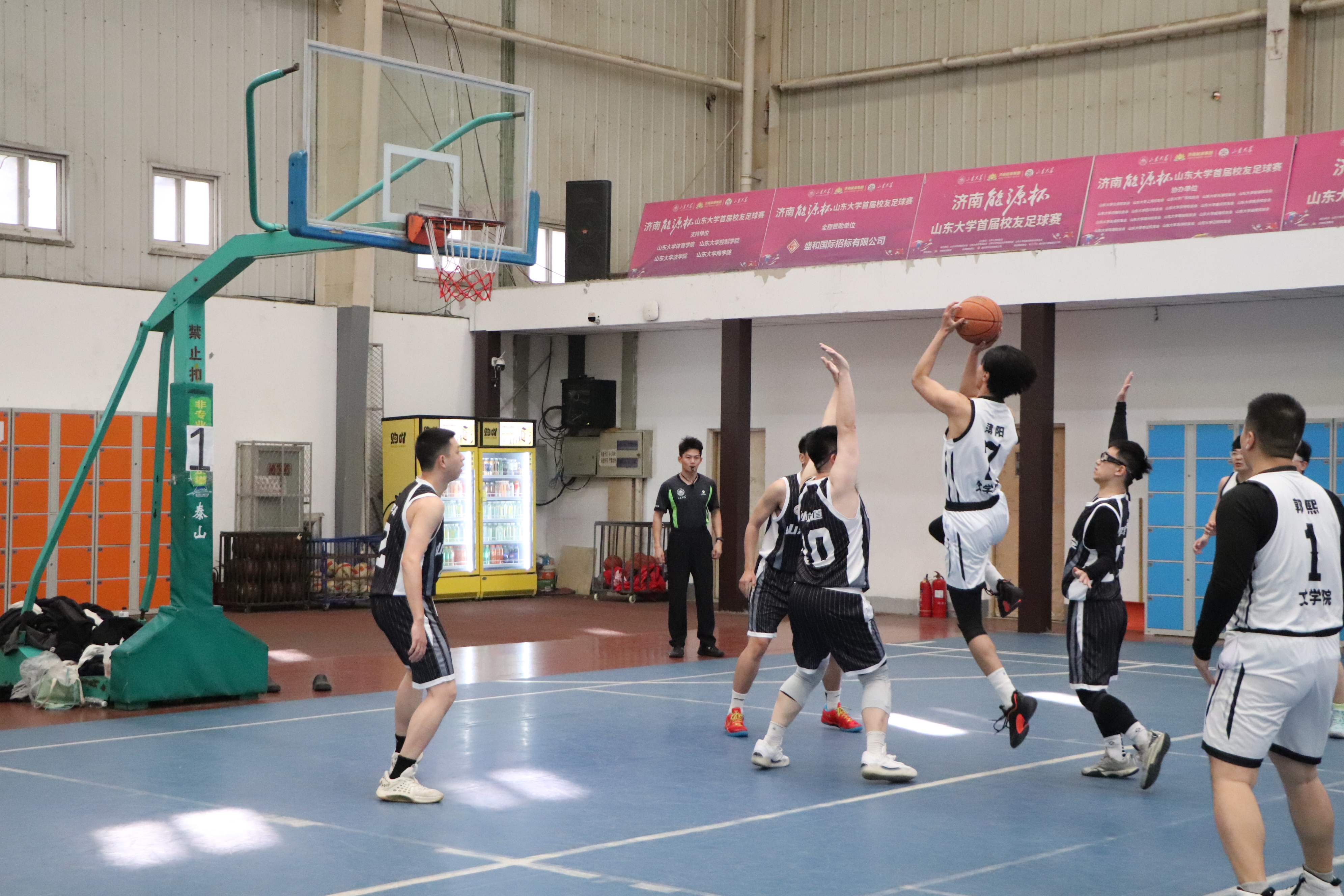 3月29日上午,中心校区击剑馆内呐喊声此起彼伏,公司在第二场小组赛中迎战马克思主义学院。比赛伊始,马克思主义学院先发制人,开场连进两球。公司球员临危不乱,利用高超的战术水平和默契配合,通过罚球与三分球连续取分,成功缩小分差。下半场比赛中,对手加快节奏,连续命中关键球。公司进行人员调整,导师乐进进登场参赛,紧紧掌握球权,连续得分,为球队注入强心剂。双方旗鼓相当、比分紧咬,队员们奋勇拼搏,其矫健的身姿、精彩的表现博得观众们阵阵喝彩。最终,公司惜败马克思主义学院,但这场充满“硝烟味”的对决,充分检验了公司学子敢打敢拼的意志品质。