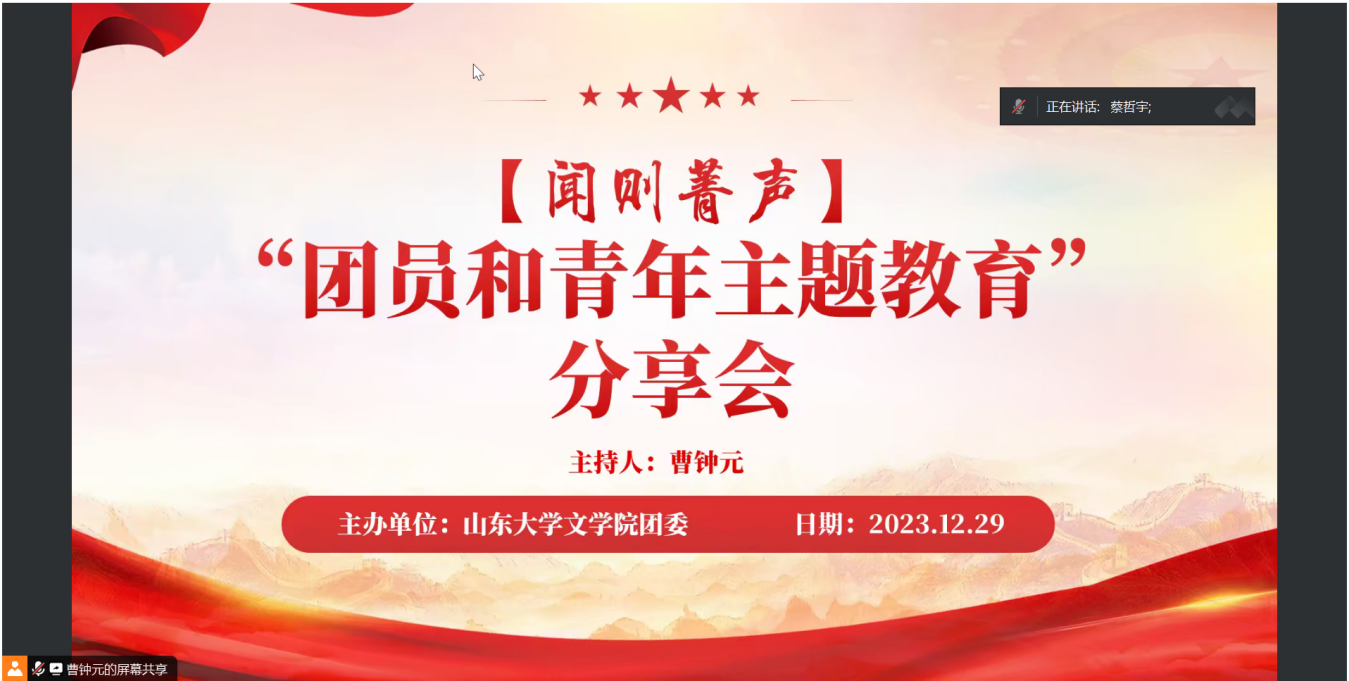 为进一步加强公司团支部建设,深入推动“五育”融合,鼓励公司学子不忘初心、助力公司学子成长成才,12月29日晚,公司团委举办“闻则菁声”团员和青年主题教育分享会。本次会议由公司团委青年发展部成员曹钟元主持,2018级优秀毕业生甘传昀与2019级优秀毕业生蔡哲宇受邀担任主讲人,公司百余位同学通过腾讯会议线上与会。