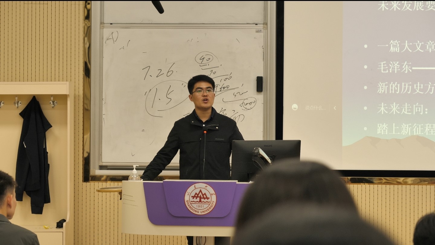 讲座最后,刘牧晨进行总结发言。他阐发自己的聆听心得,倡议大家将理论和实践相结合,不仅要努力掌握习近平新时代中国特色社会主义思想的理论体系,还要找准切口,在学习生活中躬行实践。