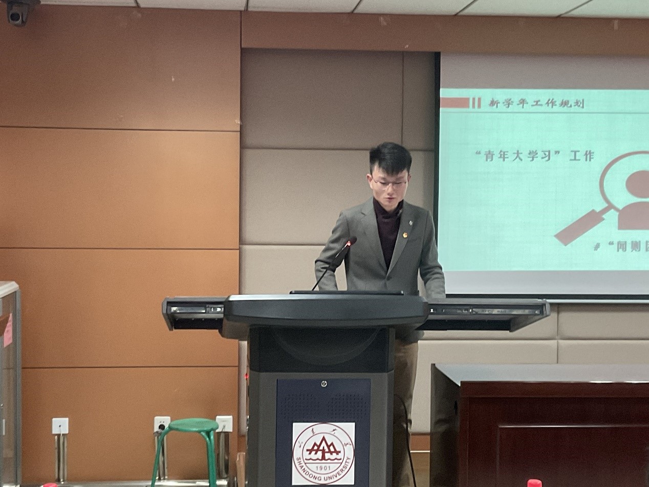 会议进入第三项议程,院团委员工负责人刘牧晨对2022学年第一学期学院共青团工作作出规划,并向各位团支部负责人介绍了学院团委新成立的团学品牌——“闻则团校”。各负责人围绕本学期工作规划,开展了讨论与交流。研究生代表、中国语言文学2022级硕士团支部书记黄小霞,向大家分享了支部推进“青年大学习”工作的方法心得。