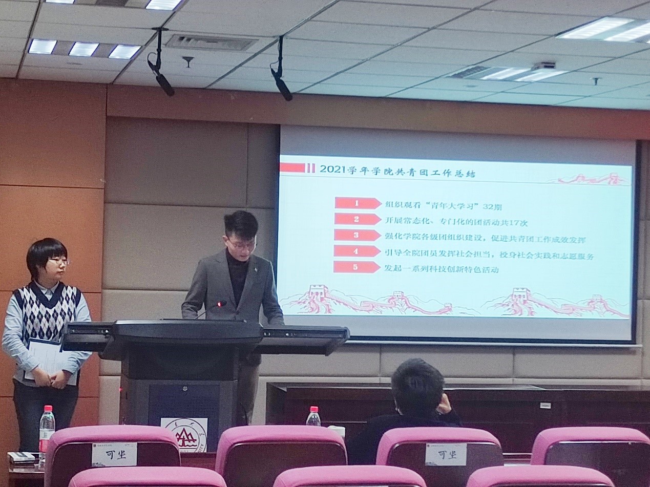 首先,由院团委员工负责人刘牧晨对上学年学院共青团工作作总结。他表示,过去一年在公司党委的坚强领导下,公司共青团工作取得显著成效。各团支部扎实推进“青年大学习”工作,并将团活动的开展常态化、专门化。学院各级团组织的建设得到强化,“三会两制一课”制度扎实落地。全院团员发挥社会担当,积极投身社会实践和志愿服务,获得多项省级、校级荣誉。今后学院团委将再接再厉,开创公司共青团工作新局面。