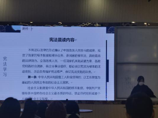让宪法走深,使学习长效化。部分团支部积极开展宪法晨读活动,营造浓厚的宪法学习氛围。同学们在良好的校园环境中受到熏陶,在积极的研讨氛围中受到教育,从而明确了真善美、假丑恶,提高了对各种违法违纪行为的免疫力。2021级硕士团支部在晨读活动中,对宪法部分条款进行细化学习与领会。2018级中文一班团支部发动班委,以小组为单位,开展读宪法活动,选取宪法序言及正文中的部分章节、条款组织大家进行朗读和交流,营造宪法宣传教育的浓厚氛围,提升法治宣传教育的感染力。2020级汉一多班团支书刘牧晨号召大家阅读《宪法》原典,通过阅读原典使大家真正树立起敬畏宪法、捍卫宪法、践行宪法的意识,使青年学子真正成为宪法忠实的崇尚者、遵守者和捍卫者。2020级强基班团支部组织全体成员统一学习宪法内容,学习结束后,由各位支部成员结合生活实际,畅谈学习宪法知识的重要性及实践意义,由团支书丁奕文对学习和发言进行总结。2020级中文一班、2021级中文一班团支部开展宪法晨读活动,同学们大声诵读,音声琅琅,对宪法条文的印象大大加深。2021级中文二班团支部举办了线上宪法晨读活动,在朗读之后,团员们分享各自感想,互相补充,坚定大家对宪法的信仰。