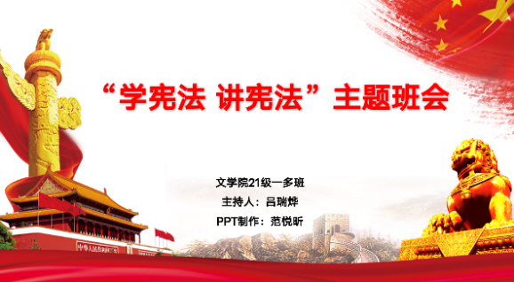 让宪法走心,使内容生动化。落实主体责任,强化宪法学习教育成果,各团支部开展了形式多样的主题班会。2021级硕士团支部开展“宪”身说法主题团日活动,共同观看了学习强国的教育视频《新宪法的故事》,大家进行了热烈讨论,并在“小打卡”微信小程序上积极发言,各抒见解。2020级汉一多班团支部开展“知宪法于心 守宪法于行”主题班会,从习近平法治思想等六大方面,详细阐述了世界和中国宪法的历史、宪法和法治与我们个人的关系、近年来国家法治建设的成就等方面内容,在治国理政重大纲领性文献的学习中,明道路、践使命。2020级中文一班团支部举行宪法学习主题班会,精心制作PPT,宣讲宪法精神。2020级中文二班团支部组织同学系统学习宪法,依托网上题库,进行宪法知识竞赛。2021级汉一多班团支部开展“学宪法 讲宪法”主题班会,讲解宪法条文,高效普法;2021级中文一班团支部除了宣传宪法外,还向同学们介绍普及《民法典》、《教育法》和疫情防控相关法律法规。