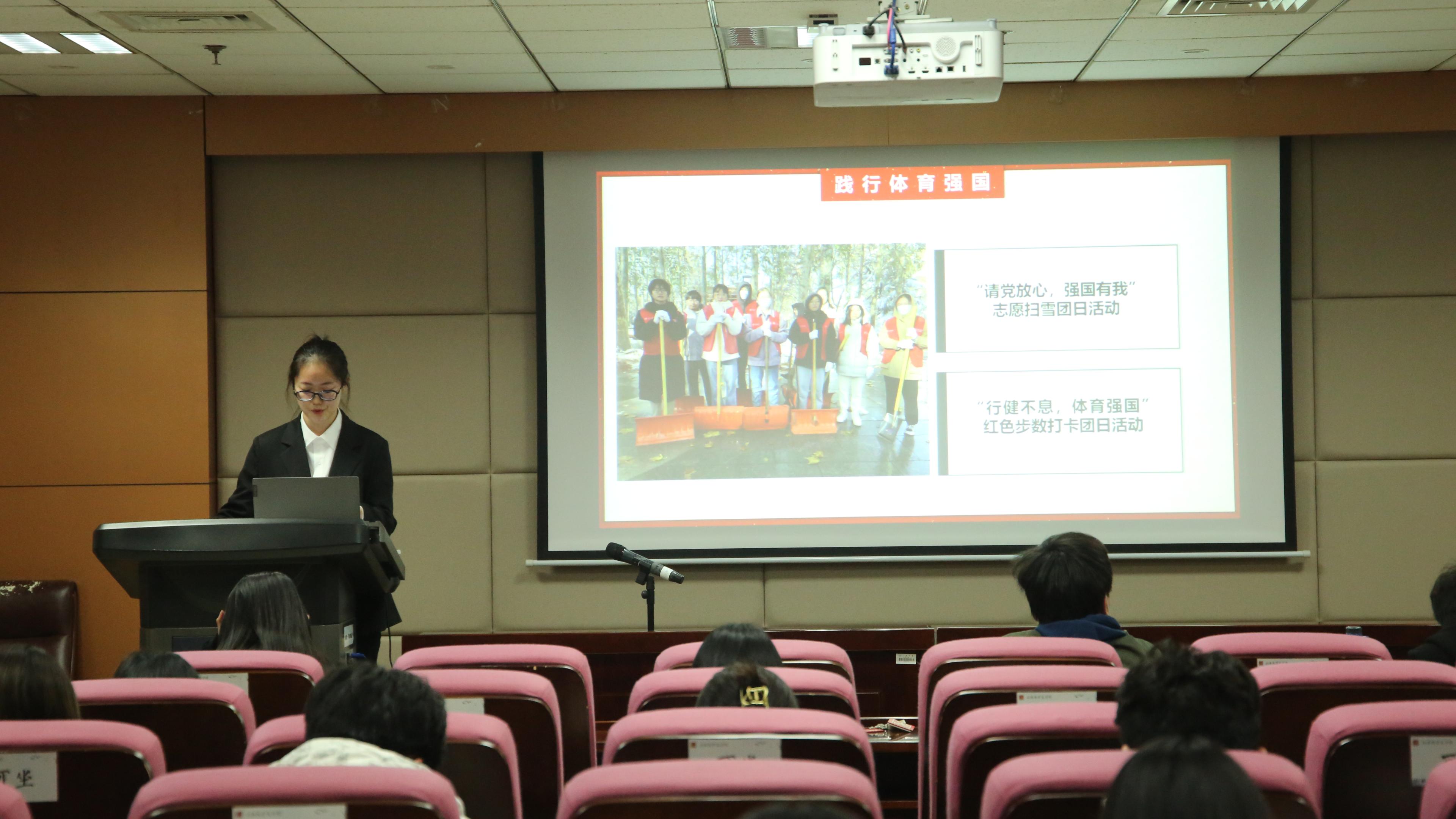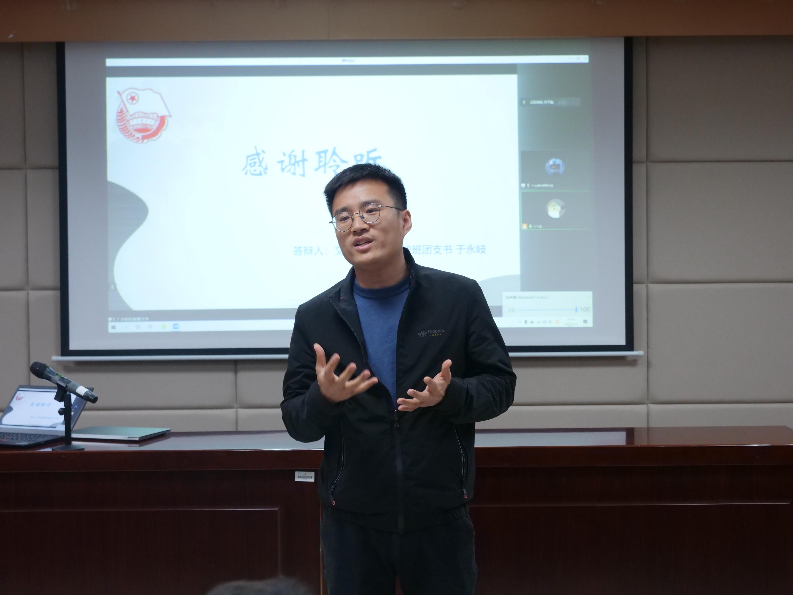 本次答辩按照抽签顺序进行,通过无记名打分的方式对各团支部答辩情况进行评分。各支部围绕组织建设、成员管理、主题团日活动举行等方面,充分展示了过去一年时间里团支部的实践成果、学习状况与精神风貌。在组织建设方面,各团支部树立团员模范,制定班级公约,切实推动班团一体化。在思想建设方面,各团支部组织红色经典读书会等特色活动,勤勉为学;参加青年大学习网上主题团课,学习党史知识,秉持初心;主动学习党的十九届六中全会精神,竞趋潮头。在活动举办方面,各团支部积极组织志愿服务活动,寓学于实践,通过前往百花社区清扫落叶、扫除校内道路积雪、收集废弃衣物和旧纸箱等活动,服务校园,服务社会,践行劳动教育,彰显学子担当,一展青春风采。