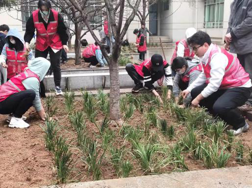 拥抱美丽春天,呵护绿色校园。各团支部积极开展线下实践活动,号召同学们感受绿色的生活方式,养成绿色低碳的生活习惯。2020级中文一班团支部开展绿色创建劳动教育社会实践活动,在学校物业老师的帮助下,发动团员助力校园绿化。2020级中文二班团支部在团支书的带领和物业老师的帮助下种植花草,为校园增添绿色生机。2021级强基班、中文一班团支部开展校园清扫活动,以实际行动共建绿色校园。2021级闻一多班团支部举办“我和春天有个约”主题团日活动,发动同学们用镜头记录春天讯息,在寝室里种下绿植,在生活中体味绿色,呵护春天。