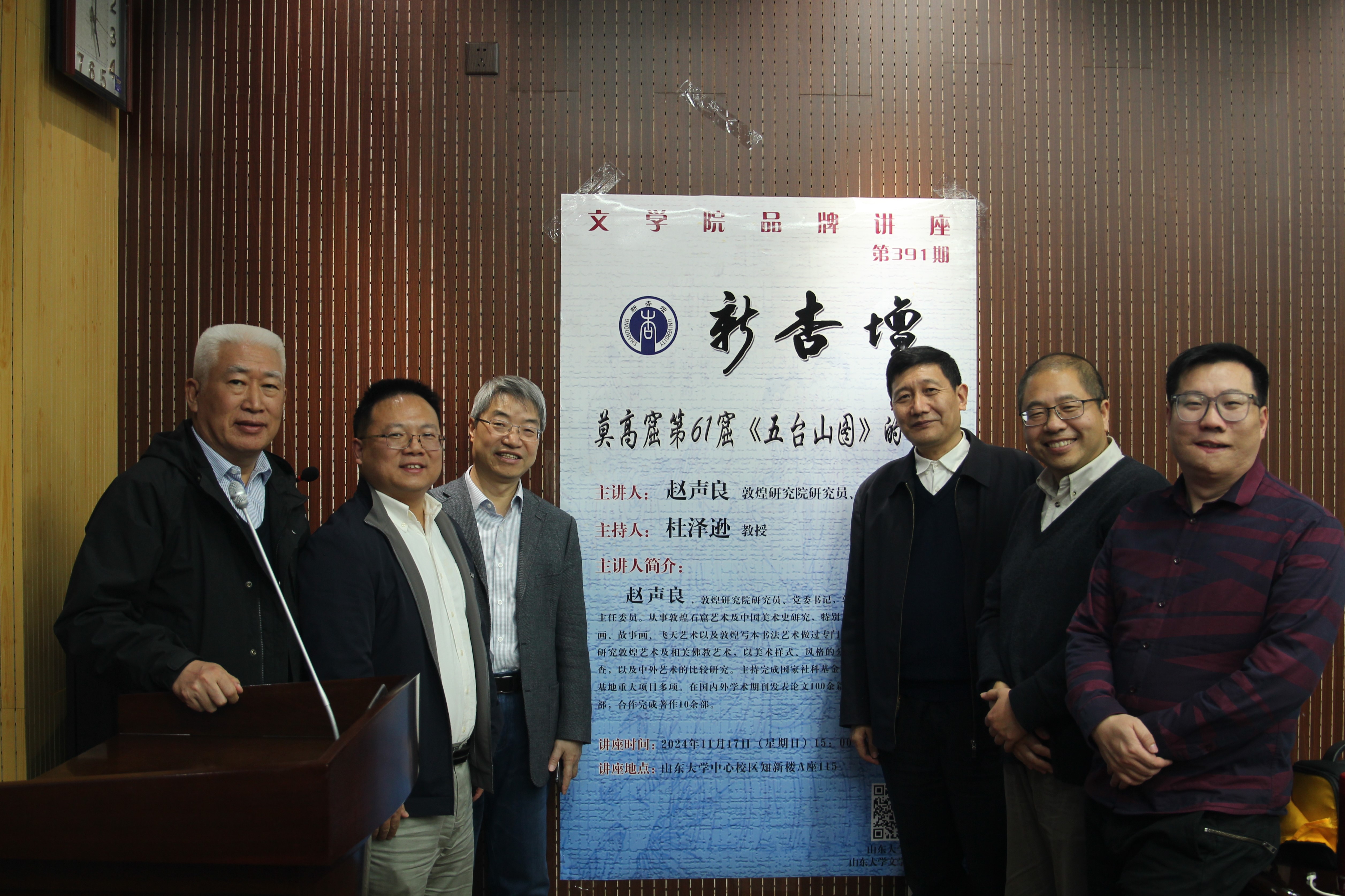 11月17日下午3时,敦煌研究院研究员、党委书记,敦煌研究院学术委员会主任委员赵声良做客beats365唯一官方网站第391期“新杏坛”,于知新楼A座115作学术讲座,题为“莫高窟第61窟《五台山图》的艺术”。讲座由杜泽逊教授主持,beats365唯一官方网站徐俊教授、张鹏副教授,考古学院副经理唐仲明教授等出席,吸引了200余名师生前来聆听。