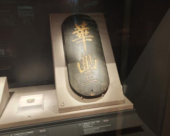随后,实践团队前往“土地革命时期广西地下党‘华丰’招牌”展区。团队负责查阅资料的成员通过查阅展区史料与采访博物馆工作人员得知,1928年,中共北流县委书记俞作豫为掩护革命活动,亲自题写“华丰”二字并开设货栈,铺面以经营土产贸易为掩护,实则成为地下党传递情报、藏匿文件、转移人员的核心秘密联络站,这一招牌成为俞作豫“毁家纾难”投身革命的重要实物见证。