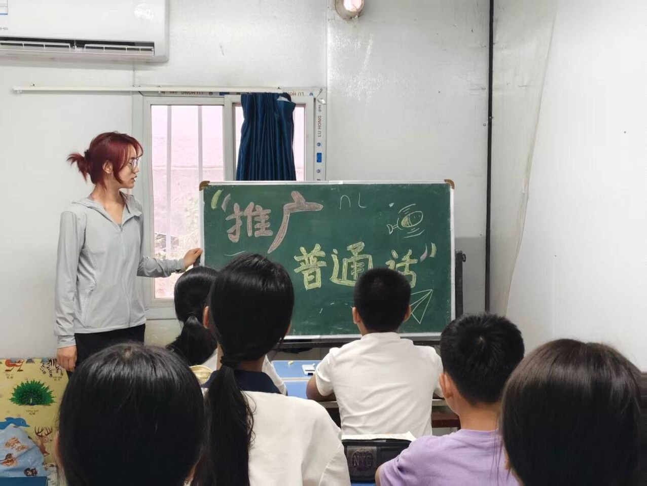 按照实践计划,团队在沂水县杨庄镇吴家楼子村开展为期两周的线下支教,开设“沂蒙文化中的民族交融”等特色课,解析沂蒙小棉袄等实例,举办“铸牢中华民族共同体意识”专题讲座宣讲,推动中华民族共同体理念融入日常。团队也在沂城街道、杨庄镇推进国家通用语言文字普及。为了解当地语言使用情况,团队开展调研摸底,覆盖青少年、基层干部等群体,为推普策略提供实证支撑。