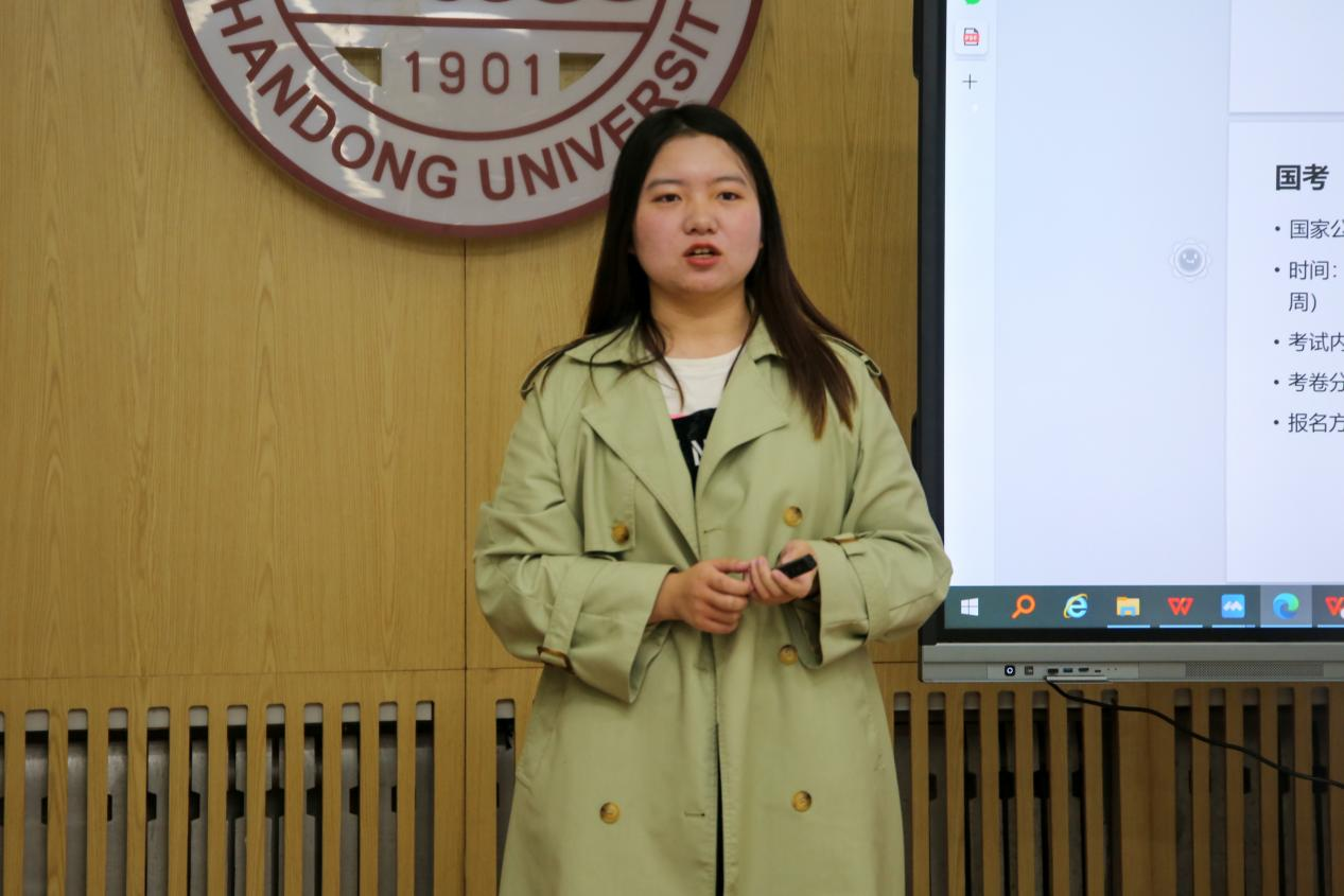 会上,戴奕全首先强调了提前做好生涯规划的重要性,建议同学们以明确的目标、集中的精力与良好的心态应对考公就业的挑战。针对选岗问题,他提醒同学们仔细甄别岗位优劣、及时关注官网信息,并充分发挥学科优势,既广且精地择岗投递。他进而分别解说了国企、公务员、私企的不同考核招聘流程,说明了笔面试的整体准备策略与具体应对技巧,并特别强调、详细解析了申论写作方法与自我介绍思路。