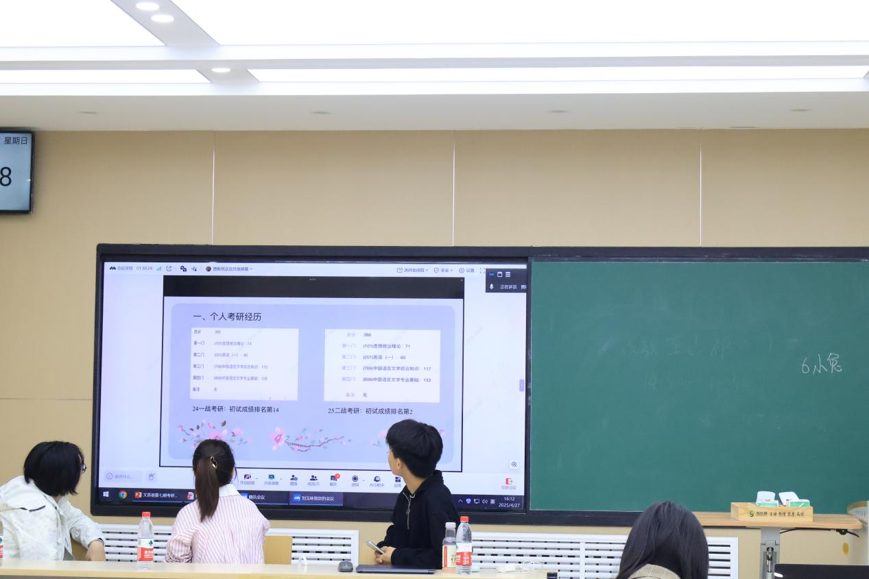 学在山大,快乐成长。在求学的过程中,公司学子通过朋辈互助的方式促进同学们实现更好的发展。为增强员工的学业规划意识,公司于4月27日下午在理综楼400d举办考研经验分享会。本次分享会邀请了公司2021级本科生李忠明、张子菡、王欣然和2020级本科生贾新然共4名主讲人进行分享,由公司员工会学术部成员沈明志进行主持。