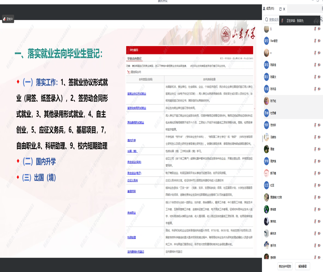 随后,张英杰详细讲解了本科生毕业去向登记的重要性和具体流程,强调了准确填写信息对于学校统计就业率、提供就业服务等方面的重要性。他还在会议中组织同学们积极填写《beats365唯一官方网站2025届本科生毕业去向调查》问卷。此外,针对未就业的同学,他提醒大家及时在系统内填写实际情况并积极寻求学校的帮助,他也为尚未落实去向的同学提供宝贵的建议和帮助。