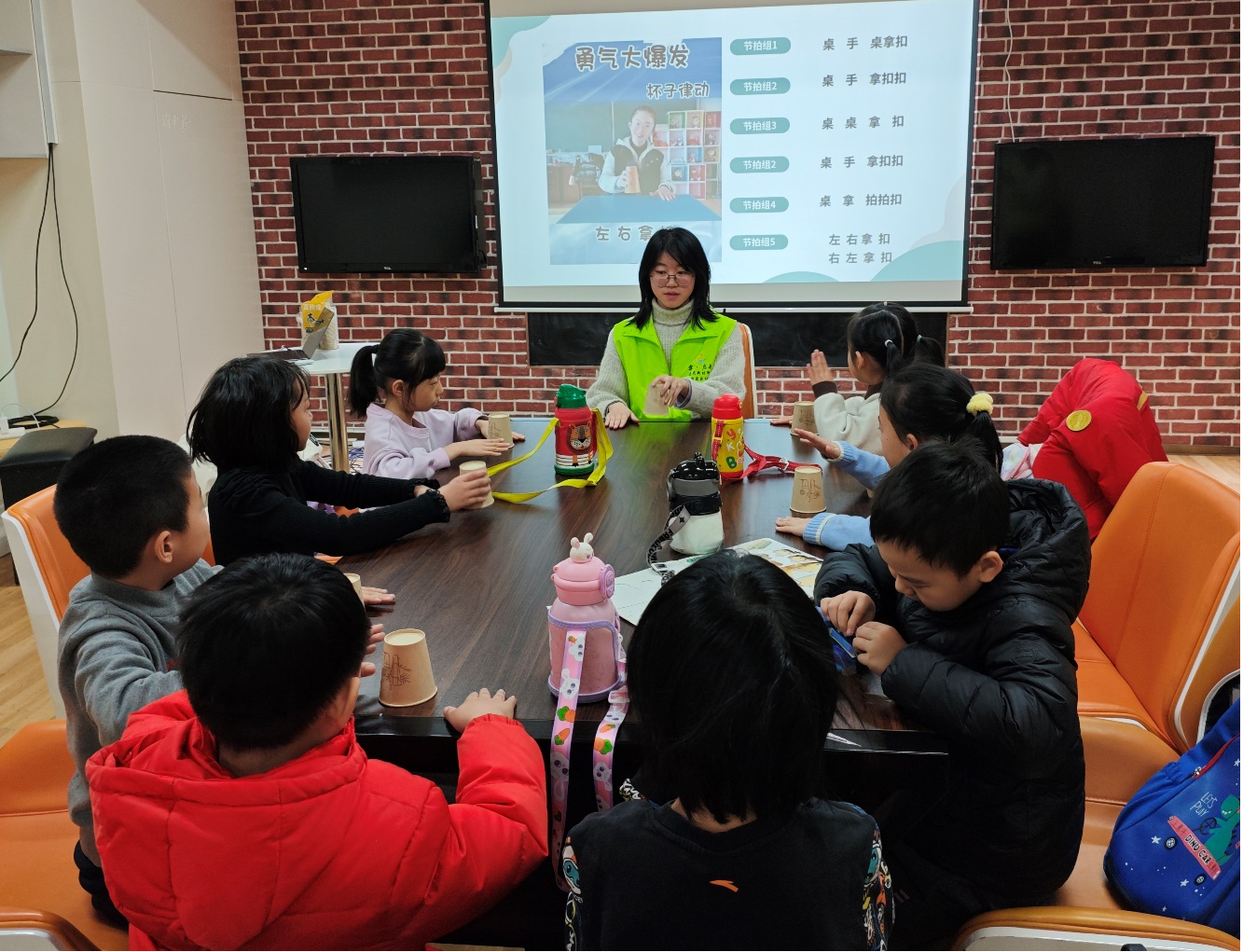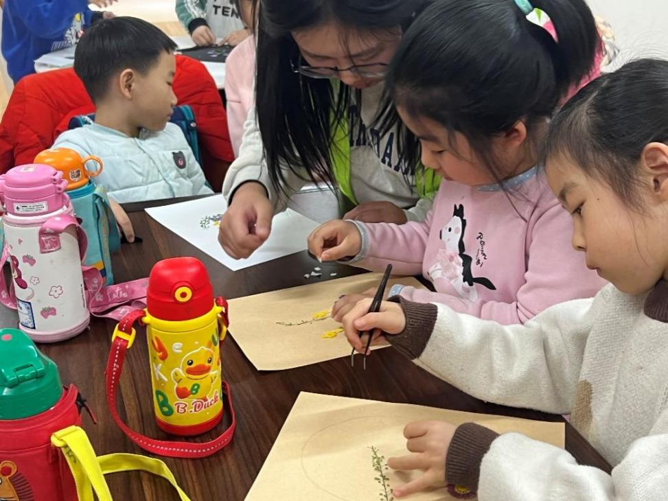 艺术实践,感悟美学匠心。在岭南押花非遗制作课程中,支教团队准备花瓣、叶子等材料,指导社区儿童学习构图设计、胶水定型等工序。在杯子舞演奏课上,队员选取《勇气大爆发》作为练习曲目,从节奏训练切入,设计手掌叩击纸杯动作,最终形成兼具节奏感与视觉美感的集体表演。