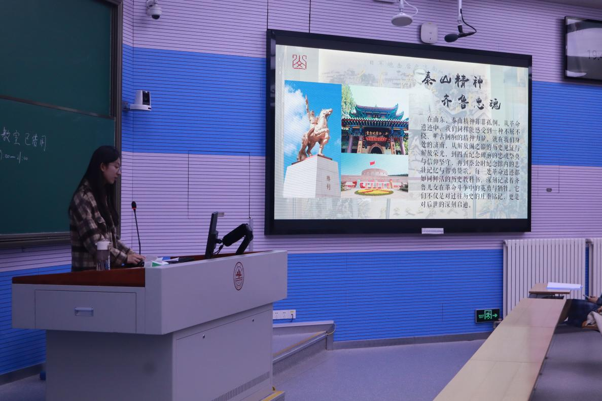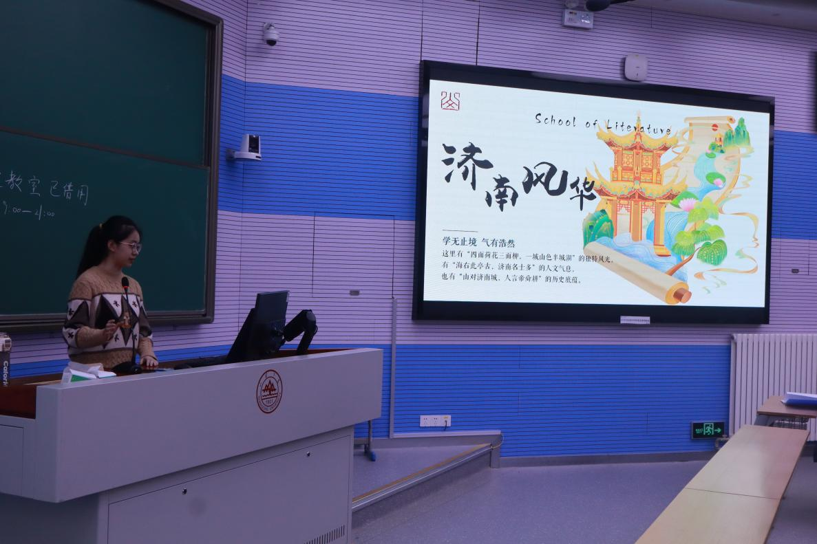 会议伊始,庞奕凡简要讲解了活动流程,而后公司23级入党积极分子谢安然、李韶涵上台宣讲。首先,她们结合新生的入学经历,介绍了济南的城市文化内涵和历史精神底蕴,并依托儒家思想分析了齐鲁大地上动人的革命故事、辉煌的学术成就和璀璨的精神内涵。随后她们由齐鲁文化引申至山大文院的文脉风尚,细数公司发展历史上辉煌壮美的学术织锦。最后,她们鼓励新生同学携手并肩、奋楫扬帆,为中文团队建设乃至院校发展贡献青年力量。