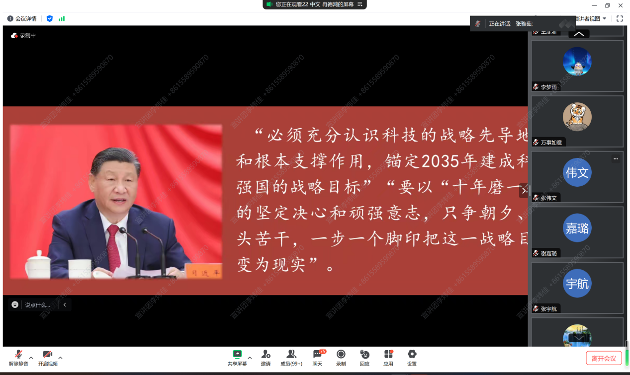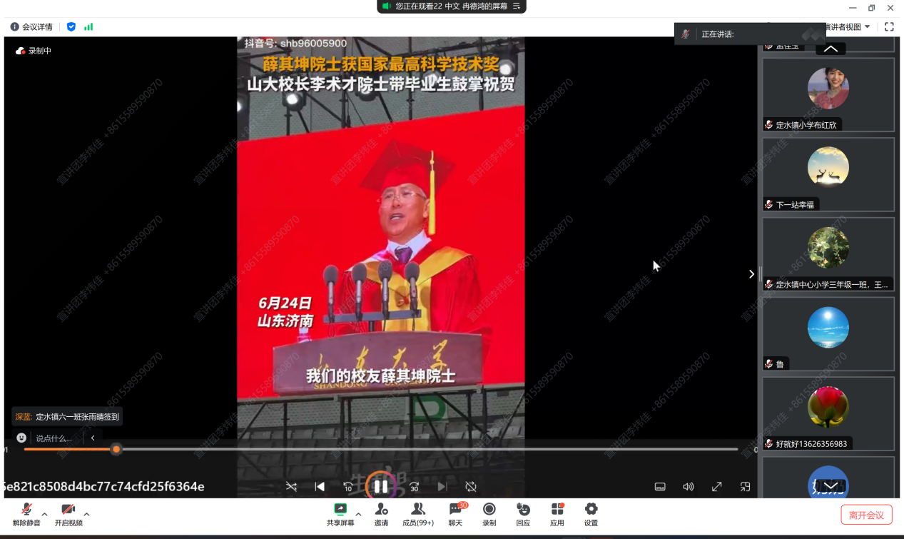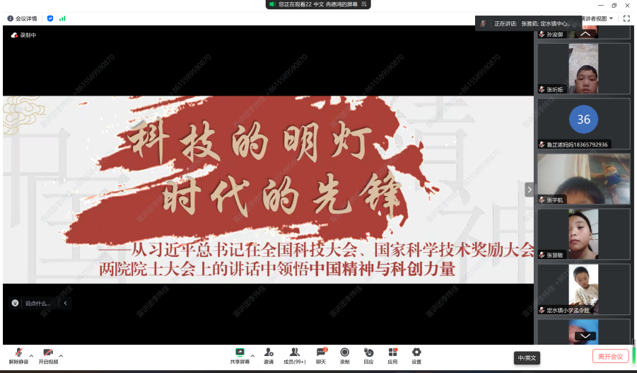 8月20日,宣讲团成员为聊城市定水小学的同学们开展线上宣讲,主讲人张雅茹通过生动的案例和详实的数据,向听众展示了党的十八大以来我国在科技创新领域取得的辉煌成就。此外,宣讲团还特别介绍了薛其坤、李术才、彭实戈等来自公司的杰出科研工作者。通过讲述科研创新领域的榜样故事,宣讲团向听众们传达了坚持创新、勇于探索的科学家精神,呼吁听众关注和支持科技创新事业,为实现中华民族伟大复兴的中国梦贡献力量。宣讲结束后,宣讲团成员还与学校师生进一步交流互动,为本次线上宣讲活动划下了圆满句号。
