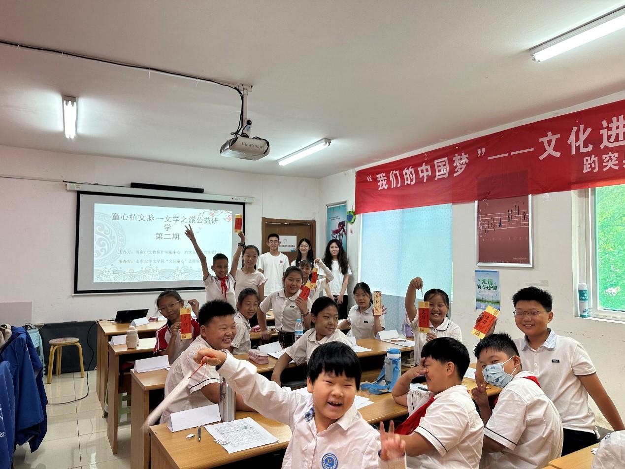 在为期三天的活动中,三位团队成员精心设计了以老舍先生经典作品为核心的教学内容以及丰富多彩的文化活动,有效激发了社区儿童学习文学的兴趣,展现了泉城文化的魅力。