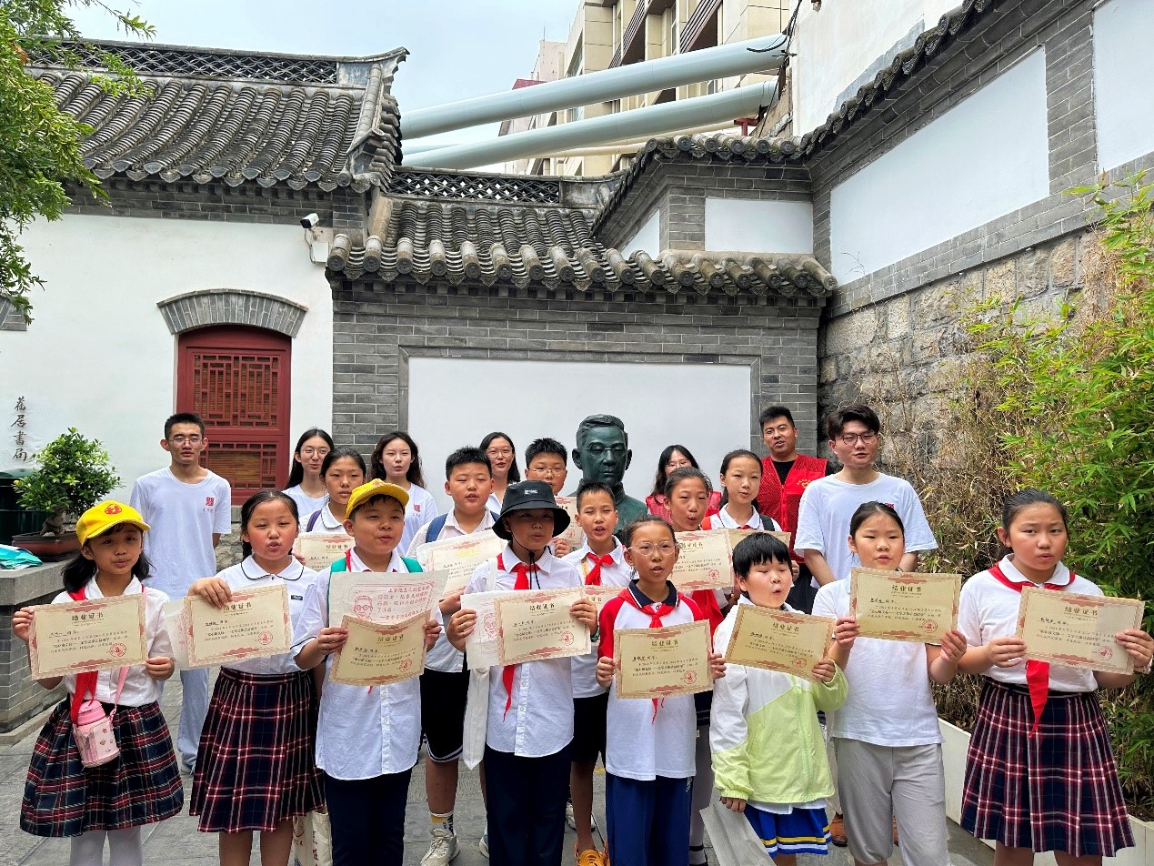 在社区工作人员的陪同下,团队成员带领孩子们前往济南老舍纪念馆开展了实地访学。通过亲身参观,同学们进一步加深了对老舍生平事迹和文学成就的认识与体会。