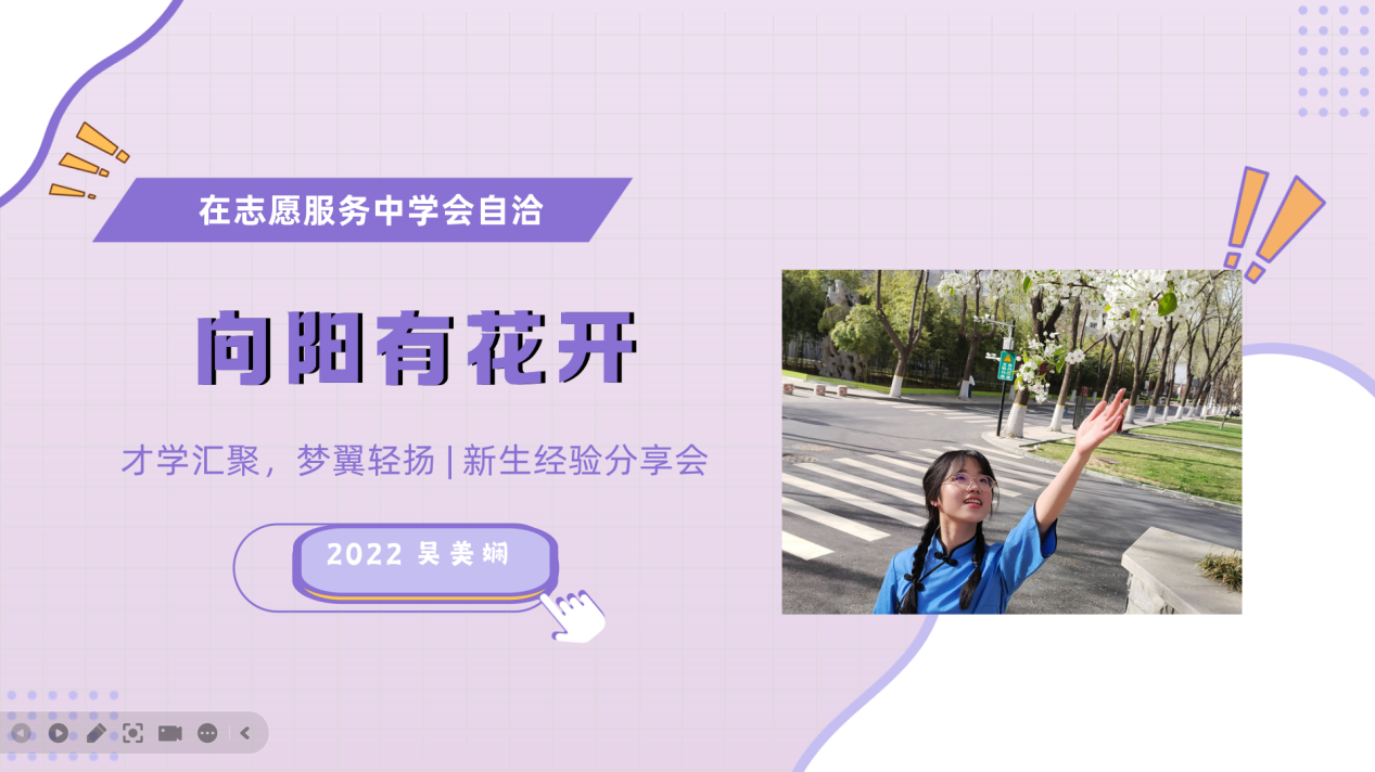 第二场分享会,曾获2024年BEAT365英国官网网站十大歌手比赛季军的“风飞”组合成员蔺华吉和耿铖坤借用丰富的图像资料为同学们直观展示了迎新晚会、才艺新星等院校文体活动的热烈氛围,并通过关键词云图描述了参与各类活动的心得体会。随后,曾任BEAT365英国官网网站员工唐仲英爱心社活动实践部部长的吴美娴讲述了自己参与志愿服务的心路历程,介绍了各类志愿服务的具体职责与参与途径。她还强调了志愿服务中“自洽”的重要性,提醒同学们合理平衡志愿服务工作与日常学习生活。