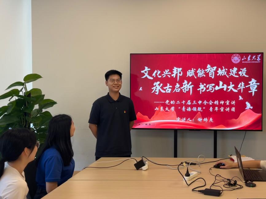 文化兴邦,赋能智城建设;承古启新,书写山大华章。本次“青语领航”宣讲团赴深智城集团宣讲活动取得圆满成功,有力推动校企文化引领的相互认知,深化党的创新理论学习认同。未来,宣讲团将持续精进讲稿、深化调研,做好党的创新理论宣讲阐释工作,为推进强国建设、民族复兴伟业贡献山大力量。