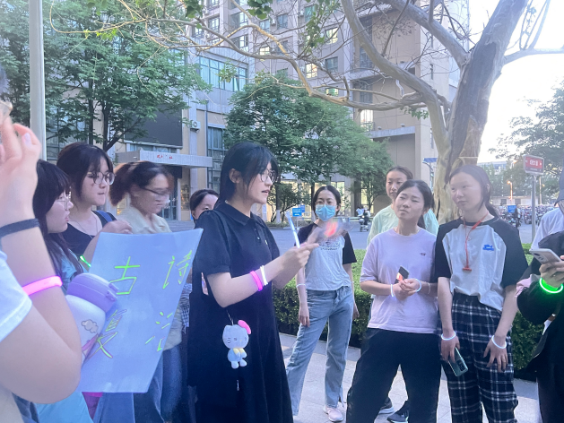 晚上7点,同学们在稷下广场集合,景天泽向同学们详细介绍了游戏规则。本次活动分为追逐战和复活战两个环节,参与同学随机分为白、绿两组,并佩戴相应颜色手环,每组安排三位猎人追赶团队成员,若猎人抓住成员,则该成员立即淘汰,生存队员可通过复活战营救被淘汰成员,最终生存者多的一队获胜。